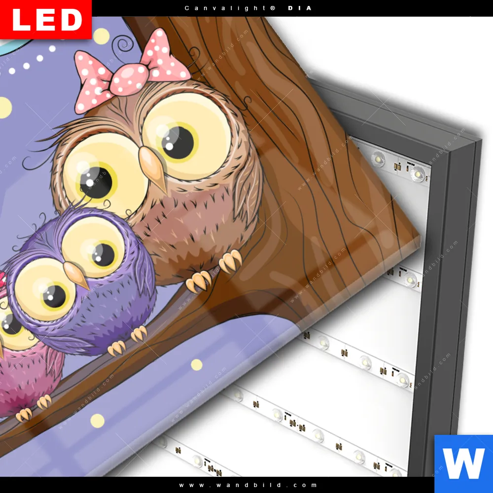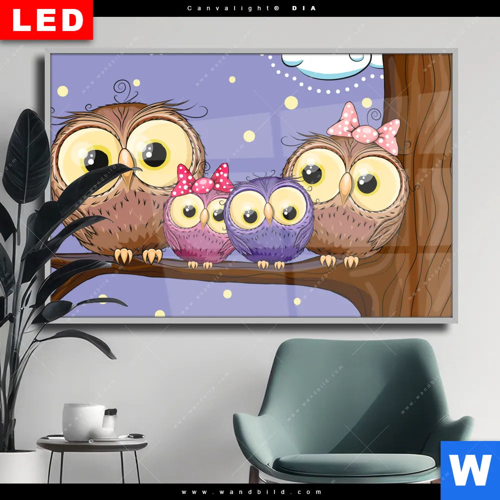 Wechselmotiv Acrylglas Canvalight® DIA | Eulenfamilie | Querformat