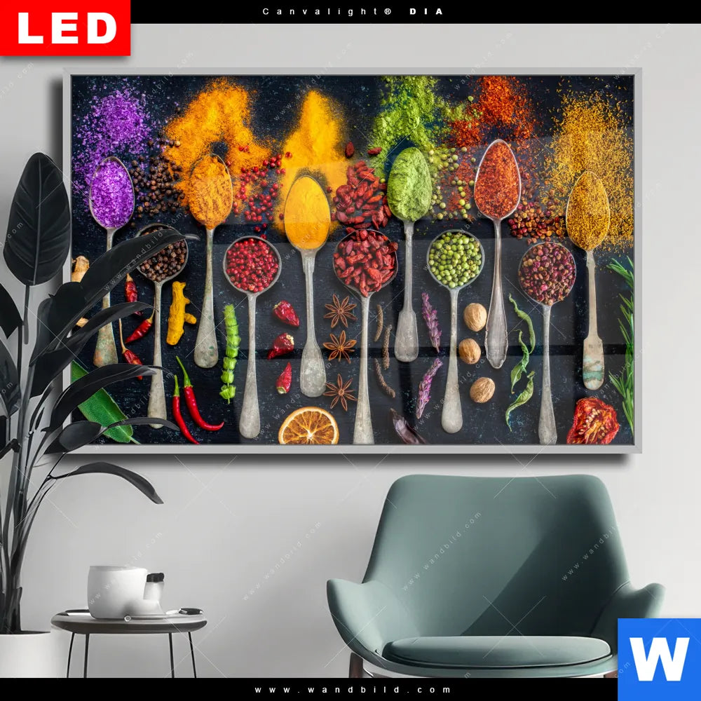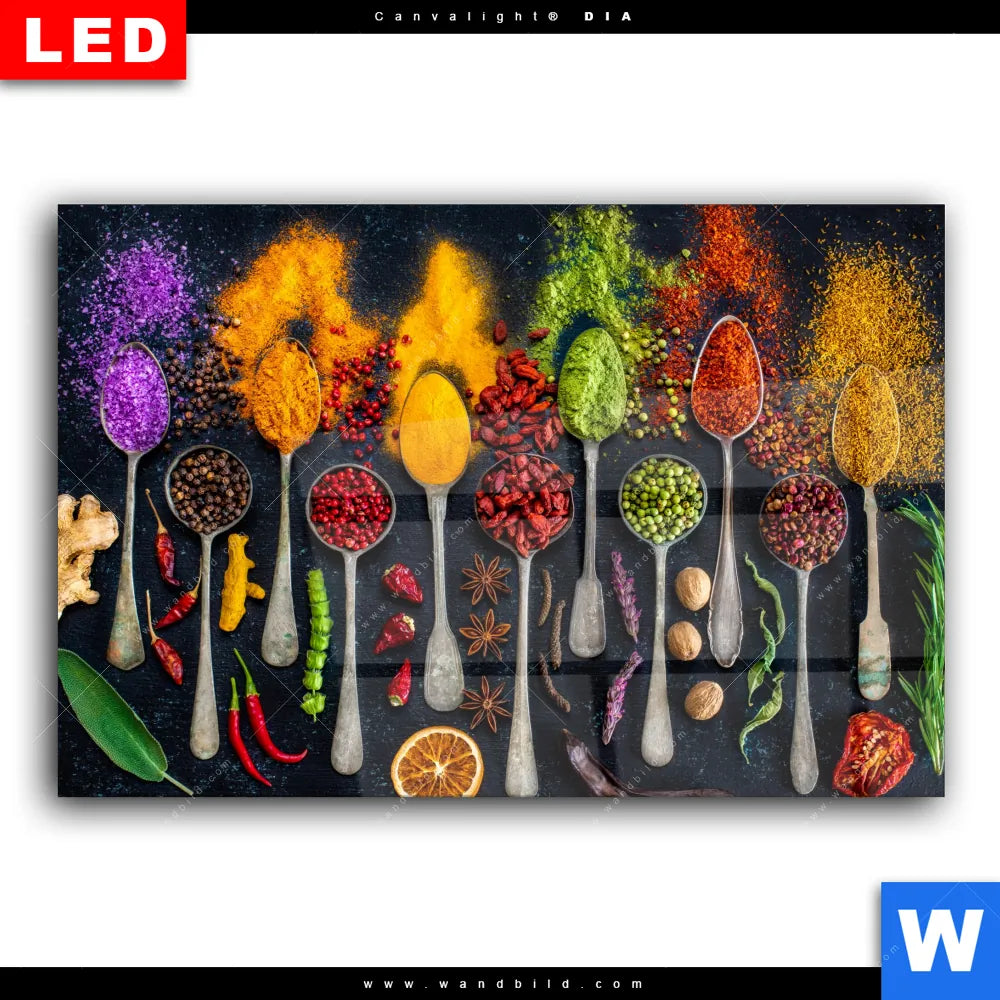 Wechselmotiv Acrylglas Canvalight® DIA | Exotische Gewürze auf Löffeln | Querformat