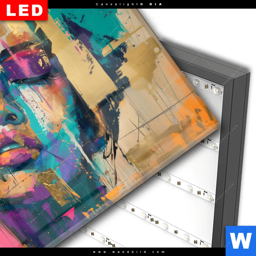 Wechselmotiv Acrylglas Canvalight® DIA | Farbexplosion - Porträt Florence | Querformat