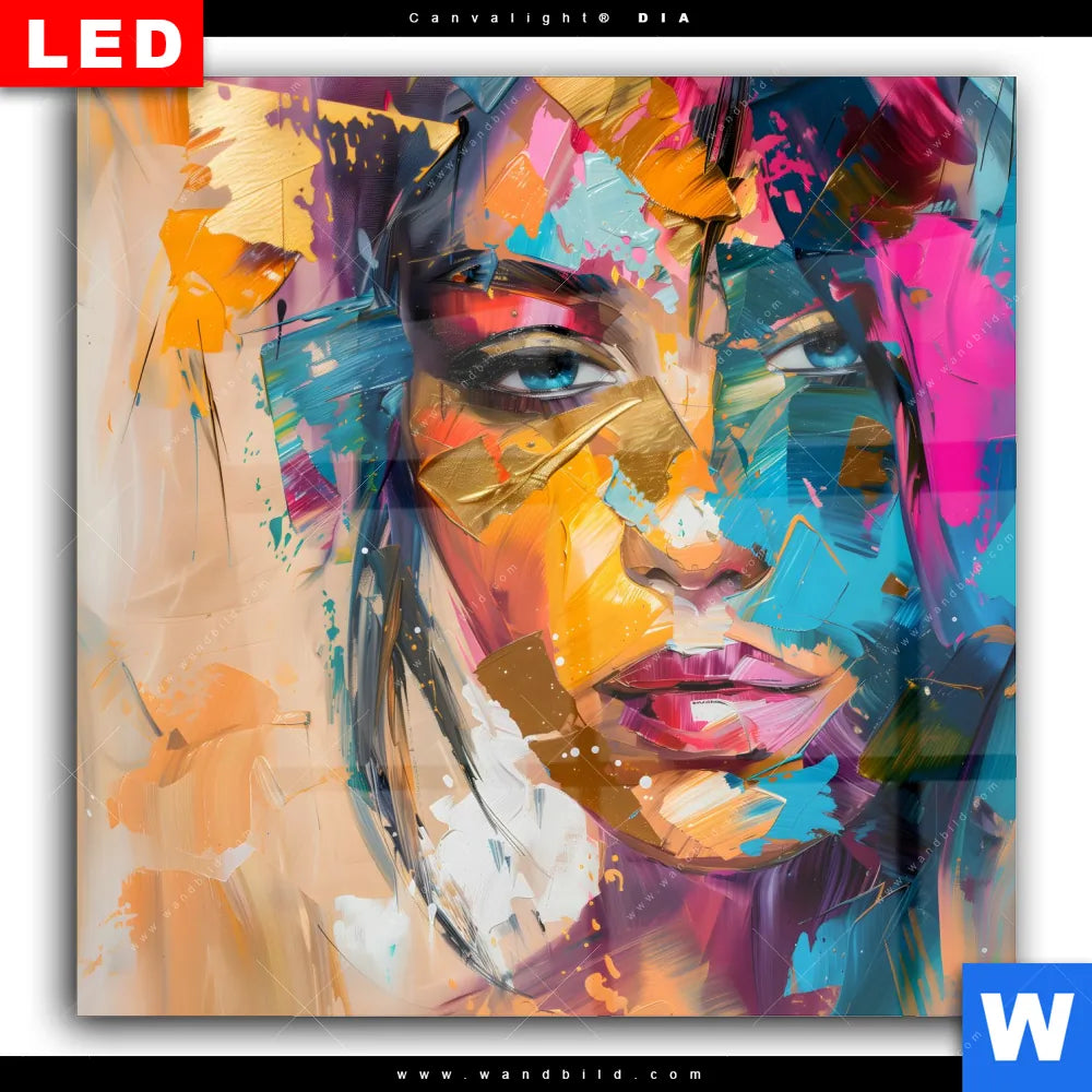 Wechselmotiv Acrylglas Canvalight® DIA | Farbexplosion - Porträt Lola | Quadrat