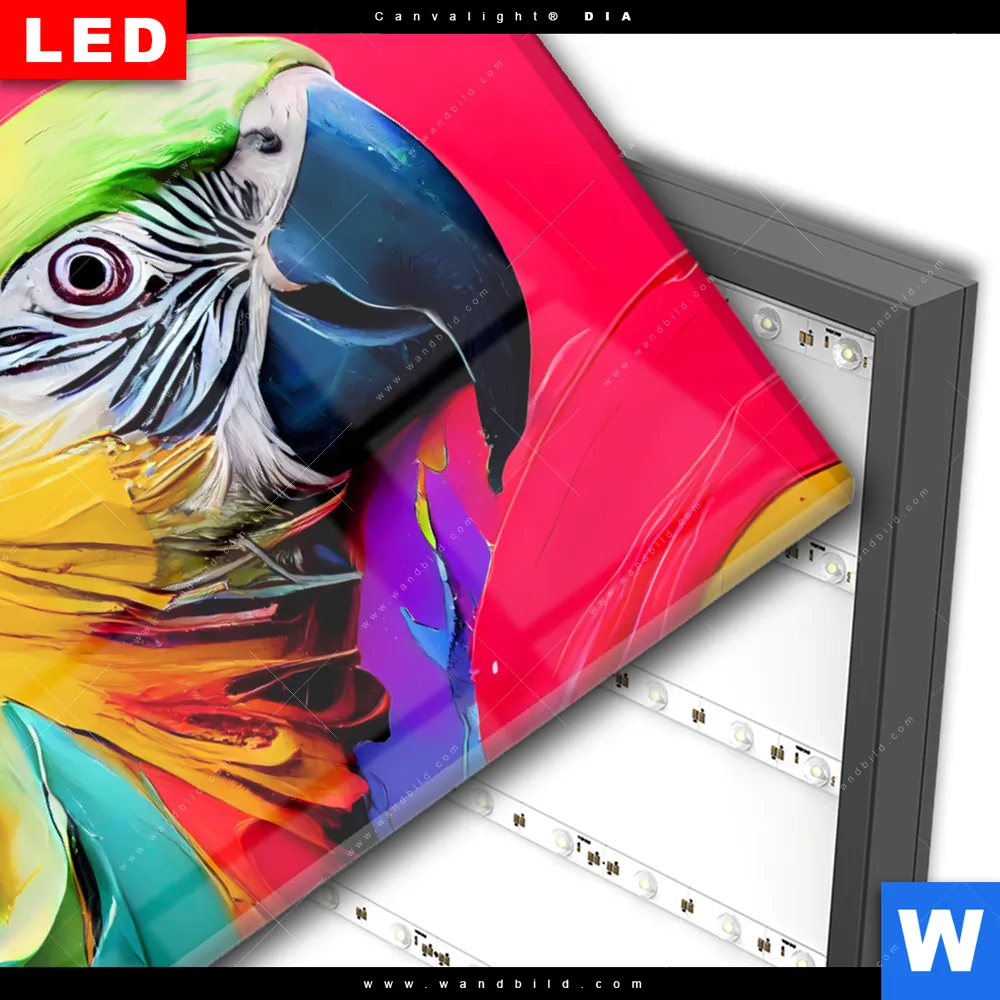 Wechselmotiv Acrylglas Canvalight® DIA | Federn Papagei | Querformat