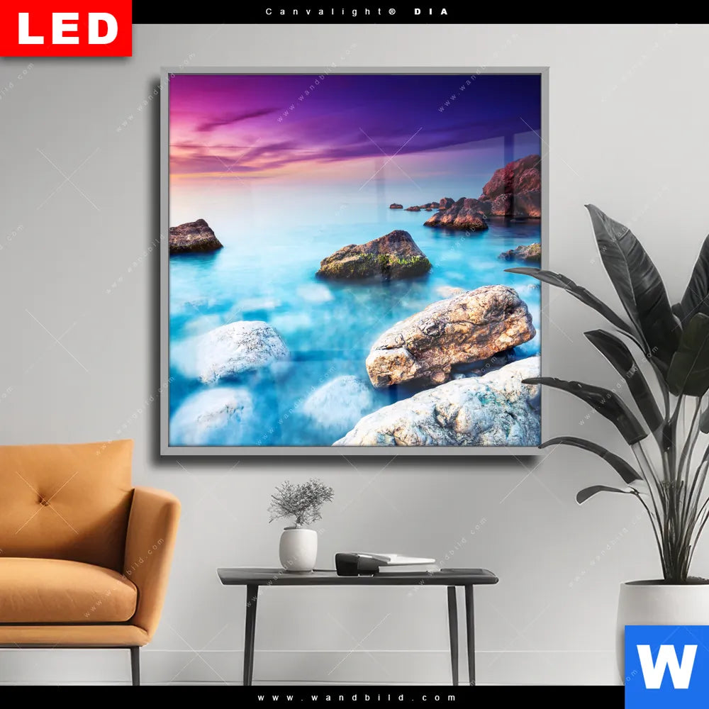 Wechselmotiv Acrylglas Canvalight® DIA | Felsen im Meer | Quadrat