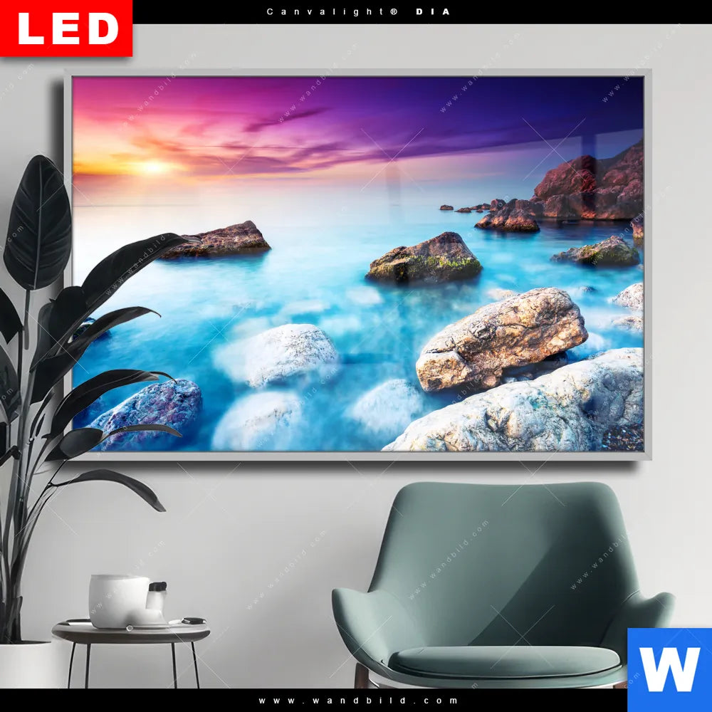 Wechselmotiv Acrylglas Canvalight® DIA | Felsen im Meer | Querformat
