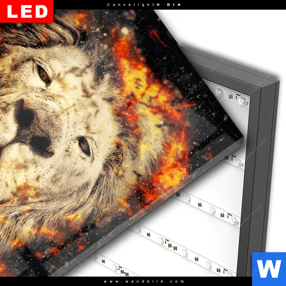 Wechselmotiv Acrylglas Canvalight® DIA | Feuer Löwe | Hochformat