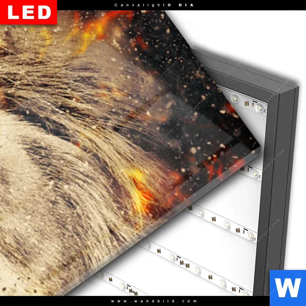 Wechselmotiv Acrylglas Canvalight® DIA | Feuer Löwe | Panorama