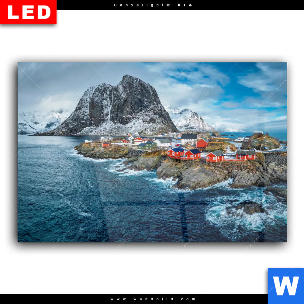 Wechselmotiv Acrylglas Canvalight® DIA | Fischerdorf mit roten Häusern | Querformat