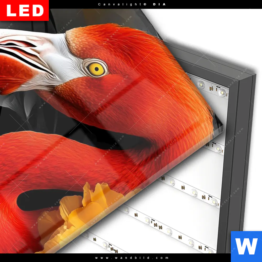 Wechselmotiv Acrylglas Canvalight® DIA | Flamingo & Blüten | Hochformat