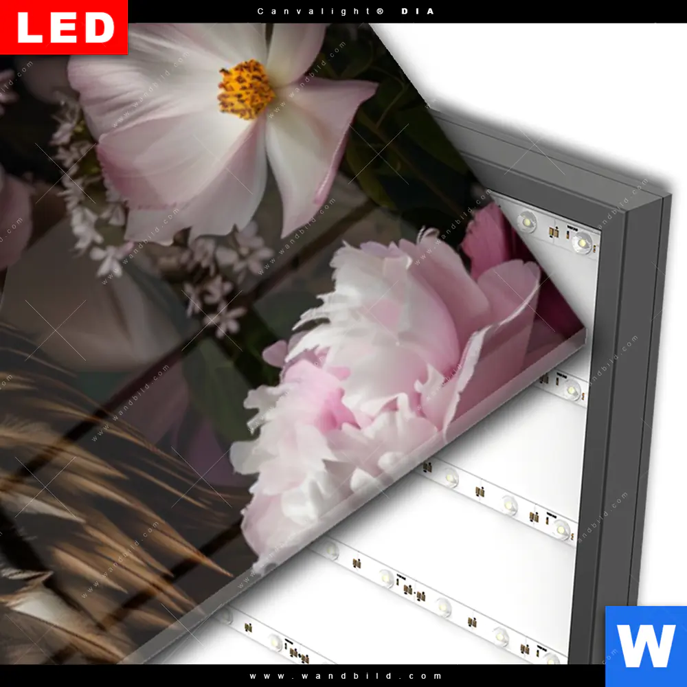 Wechselmotiv Acrylglas Canvalight® DIA | Florale Eleganz und Adlerblick | Panorama