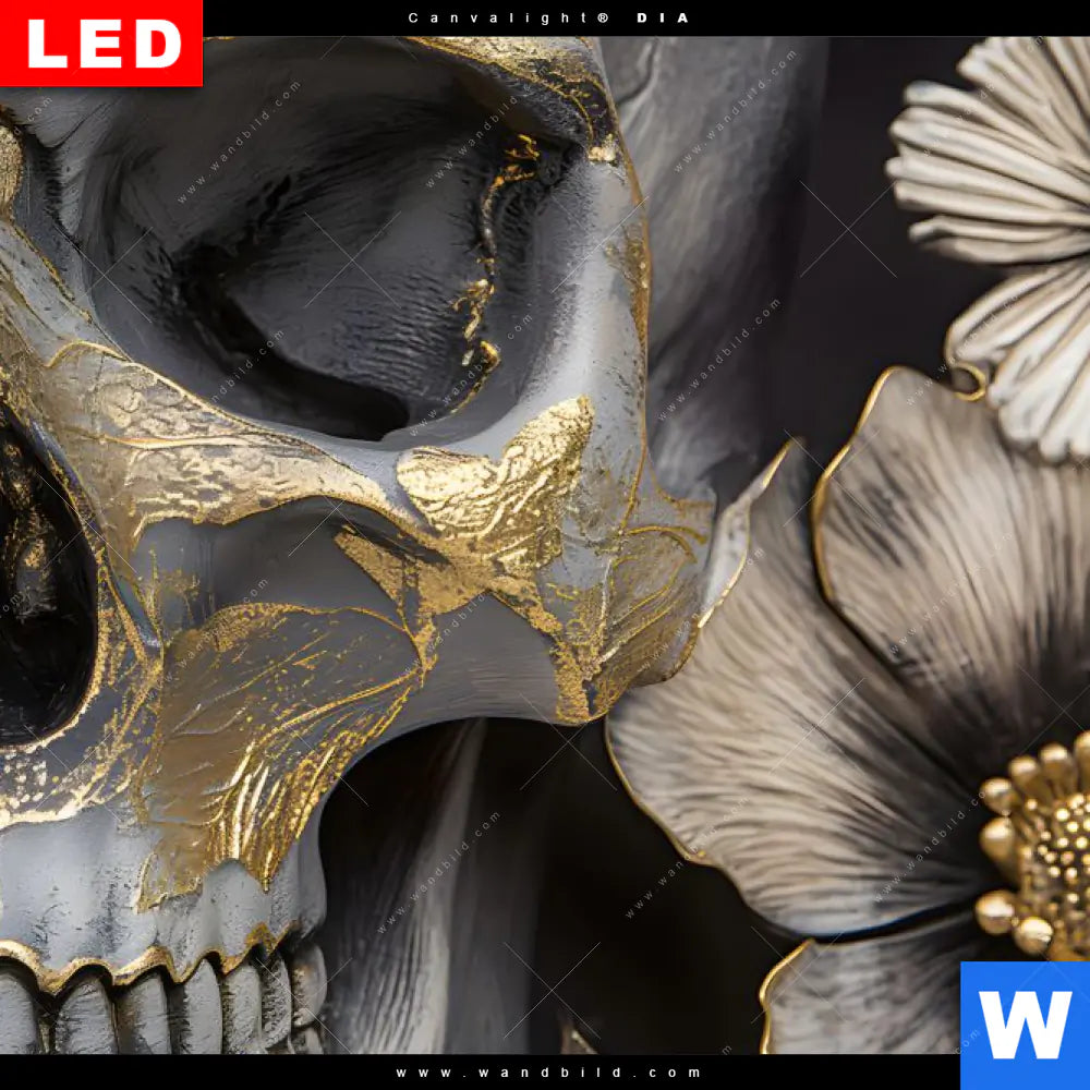Wechselmotiv Acrylglas Canvalight® DIA | Floraler Totenschädel | Panorama