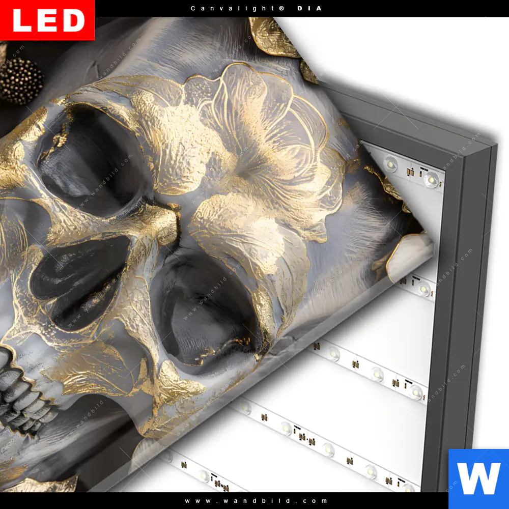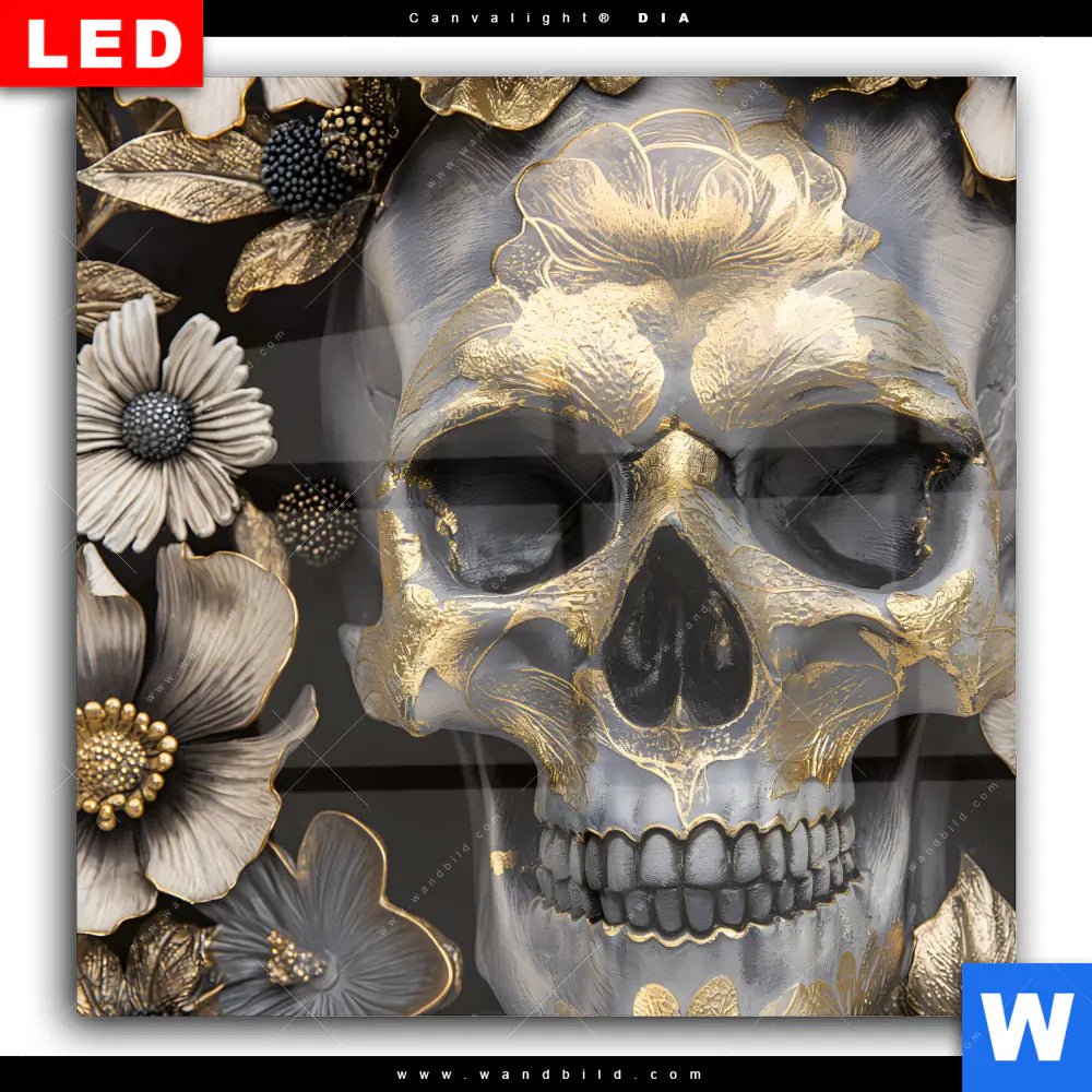 Wechselmotiv Acrylglas Canvalight® DIA | Floraler Totenschädel | Quadrat