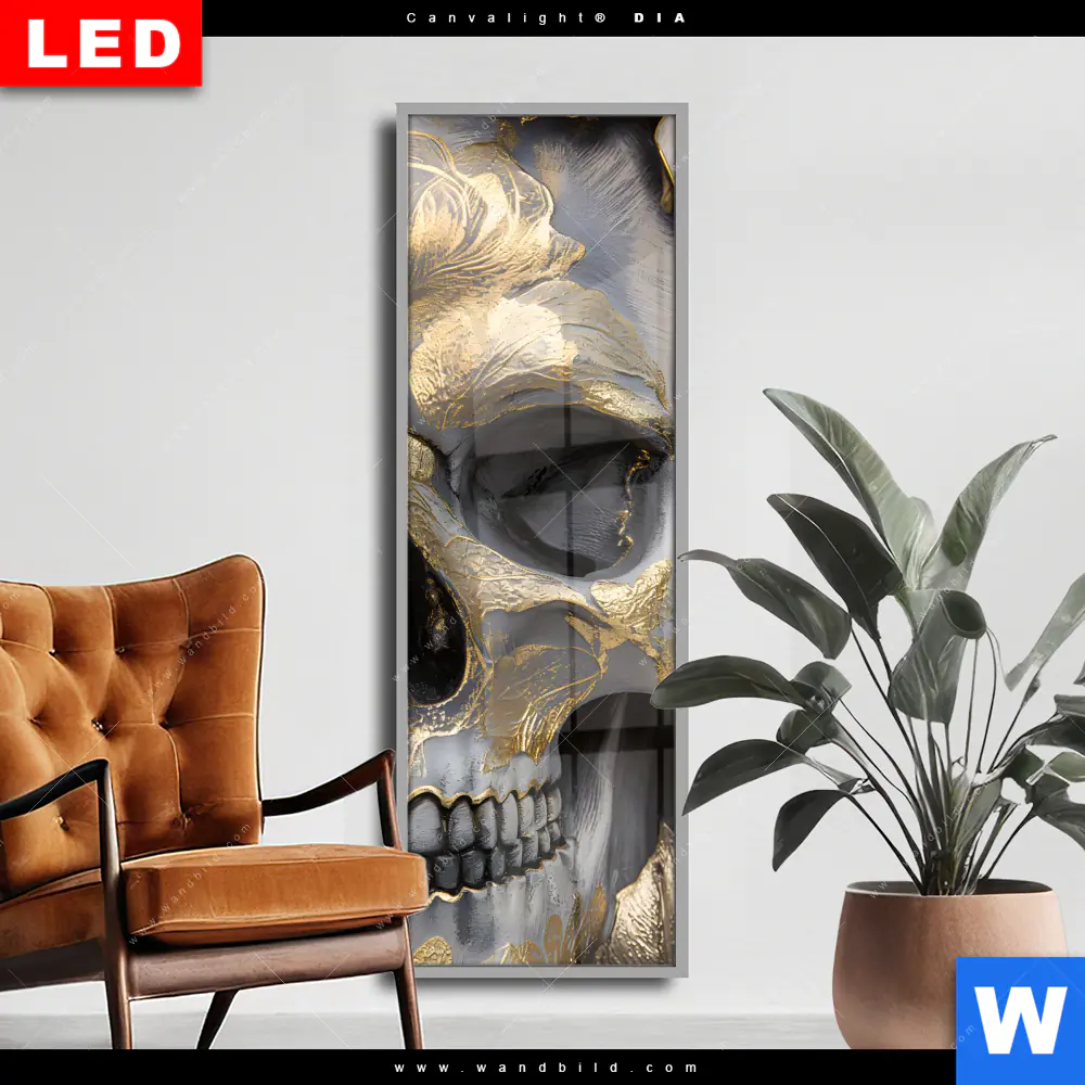 Wechselmotiv Acrylglas Canvalight® DIA | Floraler Totenschädel | Schmal