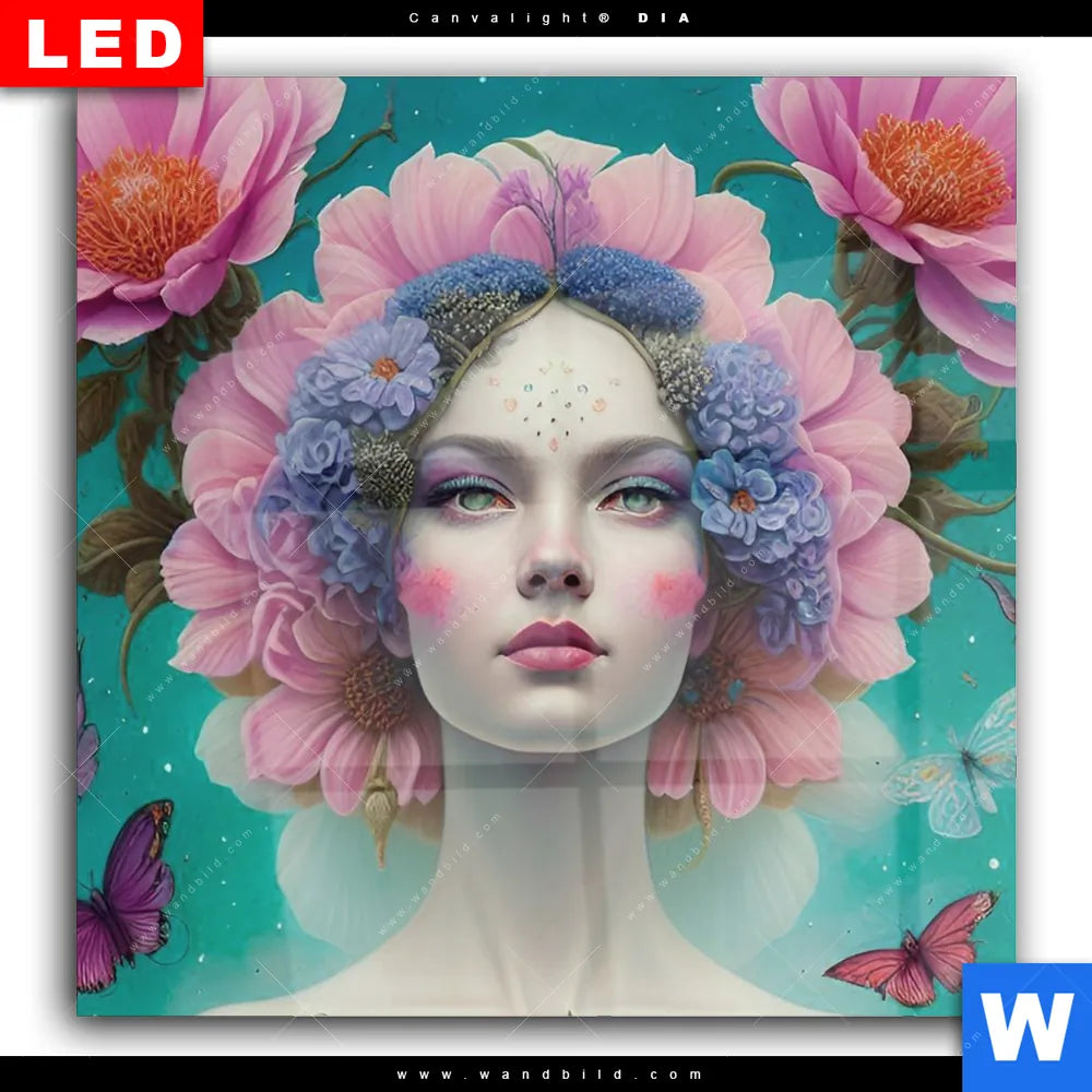 Wechselmotiv Acrylglas Canvalight® DIA | Florales Frauenporträt - Miona | Quadrat