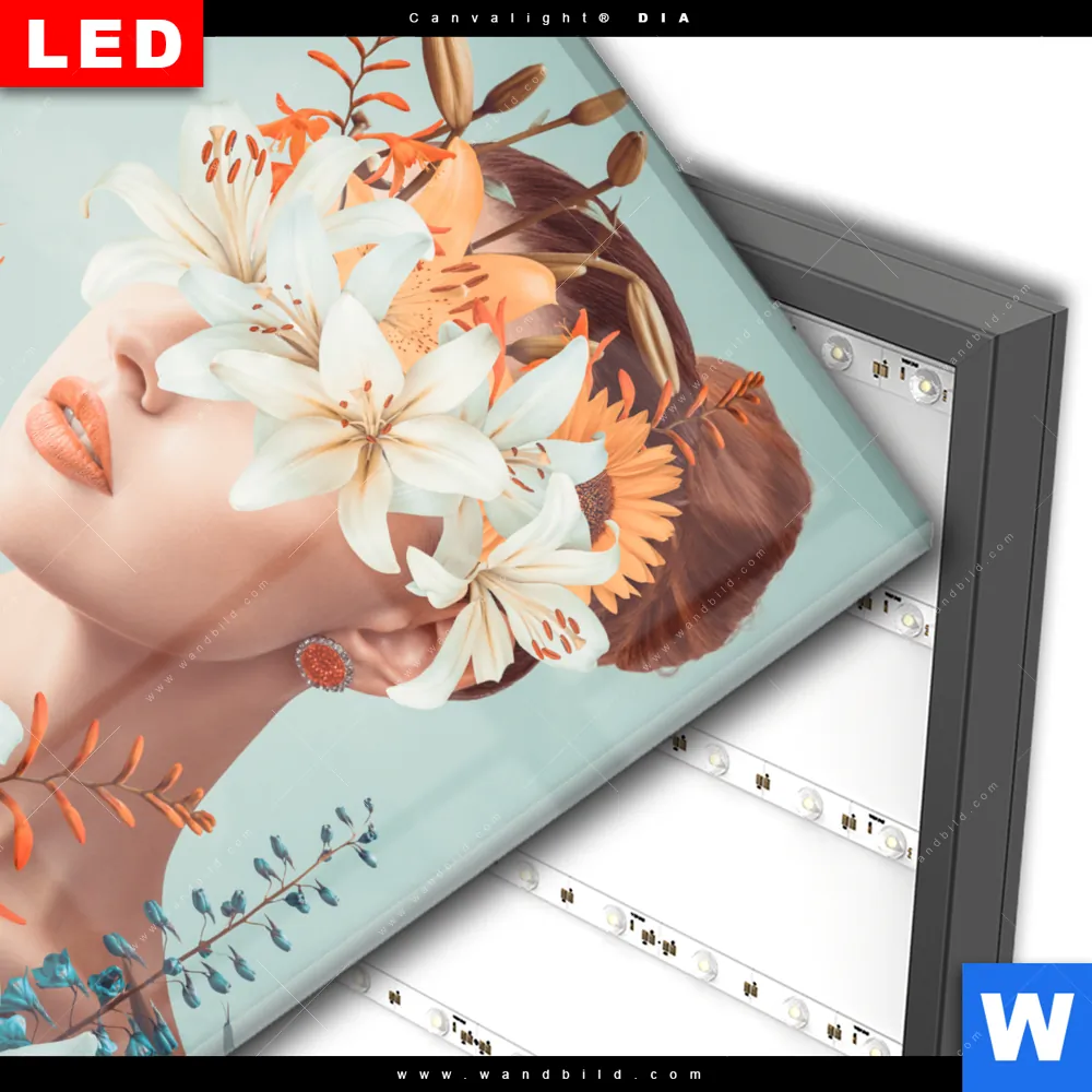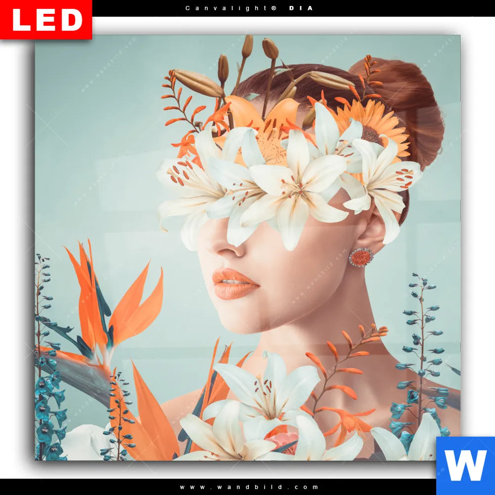 Wechselmotiv Acrylglas Canvalight® DIA | Florales Frauenporträt - Viola | Quadrat