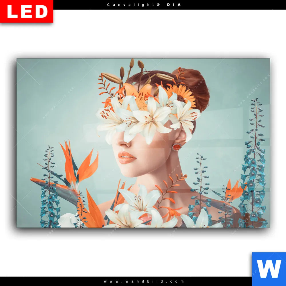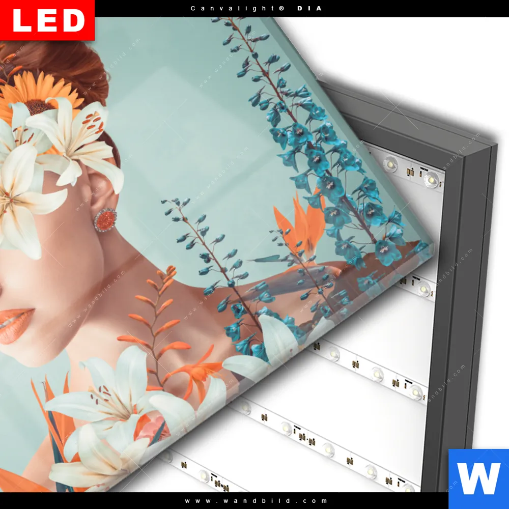 Wechselmotiv Acrylglas Canvalight® DIA | Florales Frauenporträt - Viola | Querformat