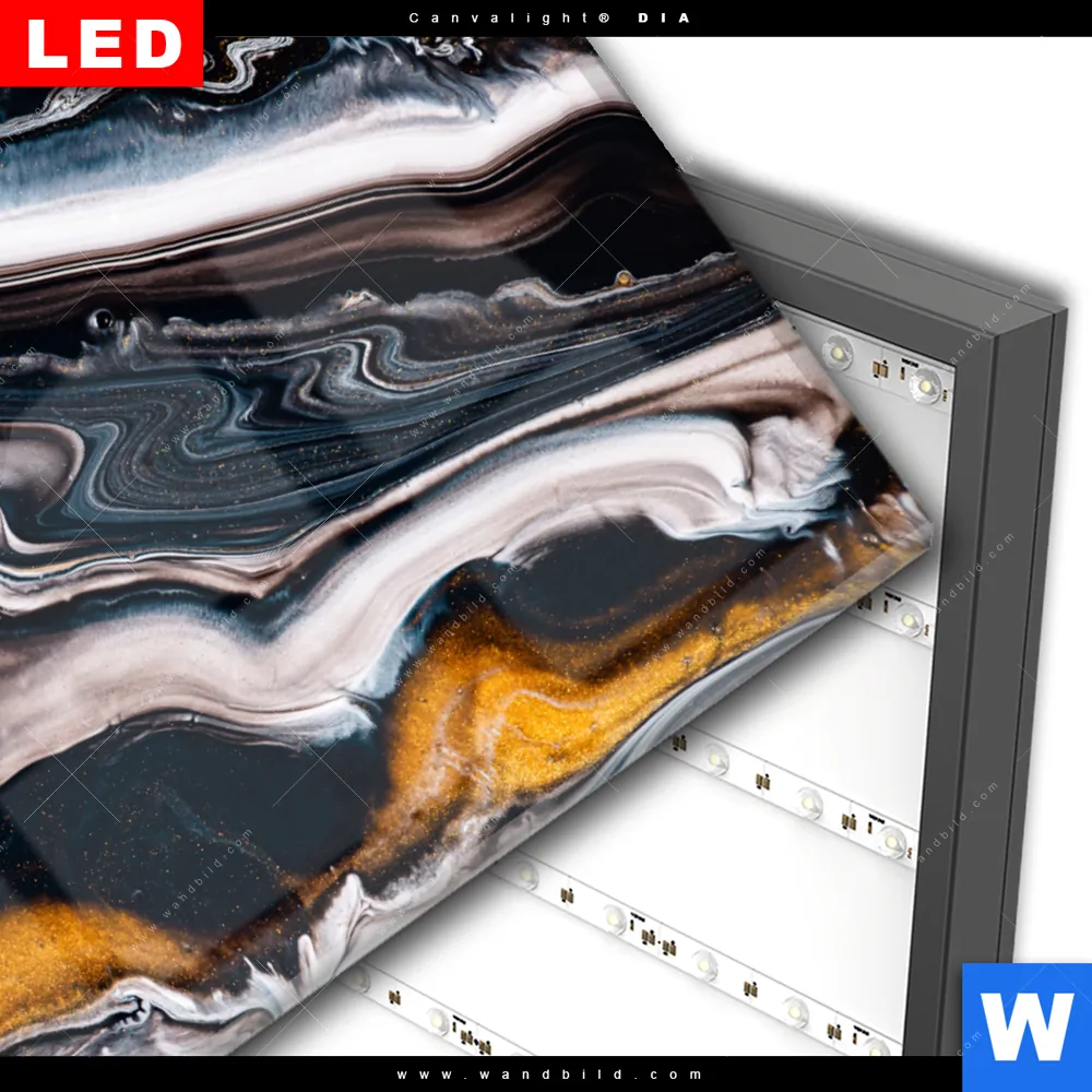 Wechselmotiv Acrylglas Canvalight® DIA | Fluid Art Goldrausch | Hochformat