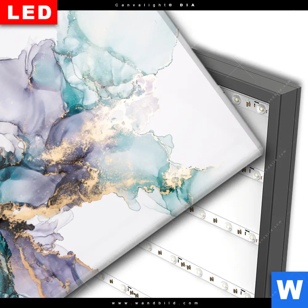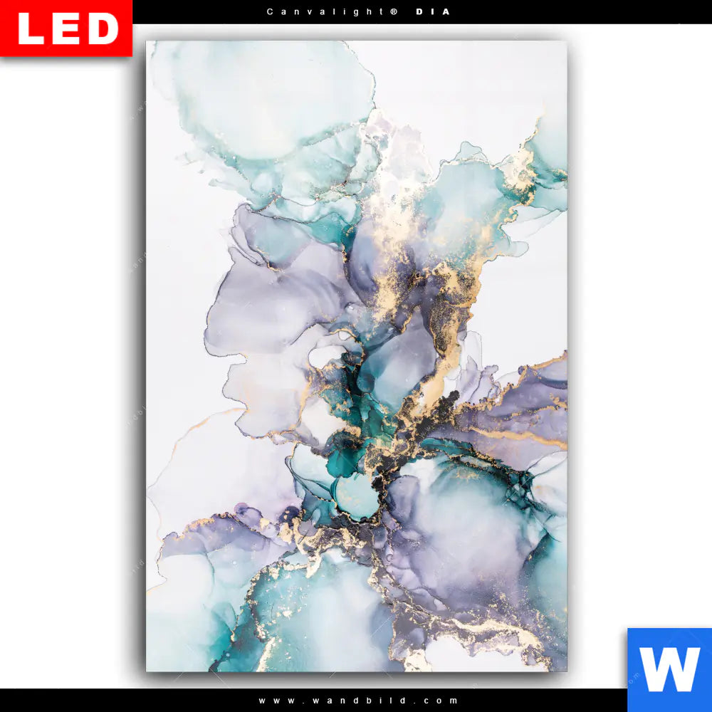 Wechselmotiv Acrylglas Canvalight® DIA | Fluid Art Lila & Türkis | Hochformat