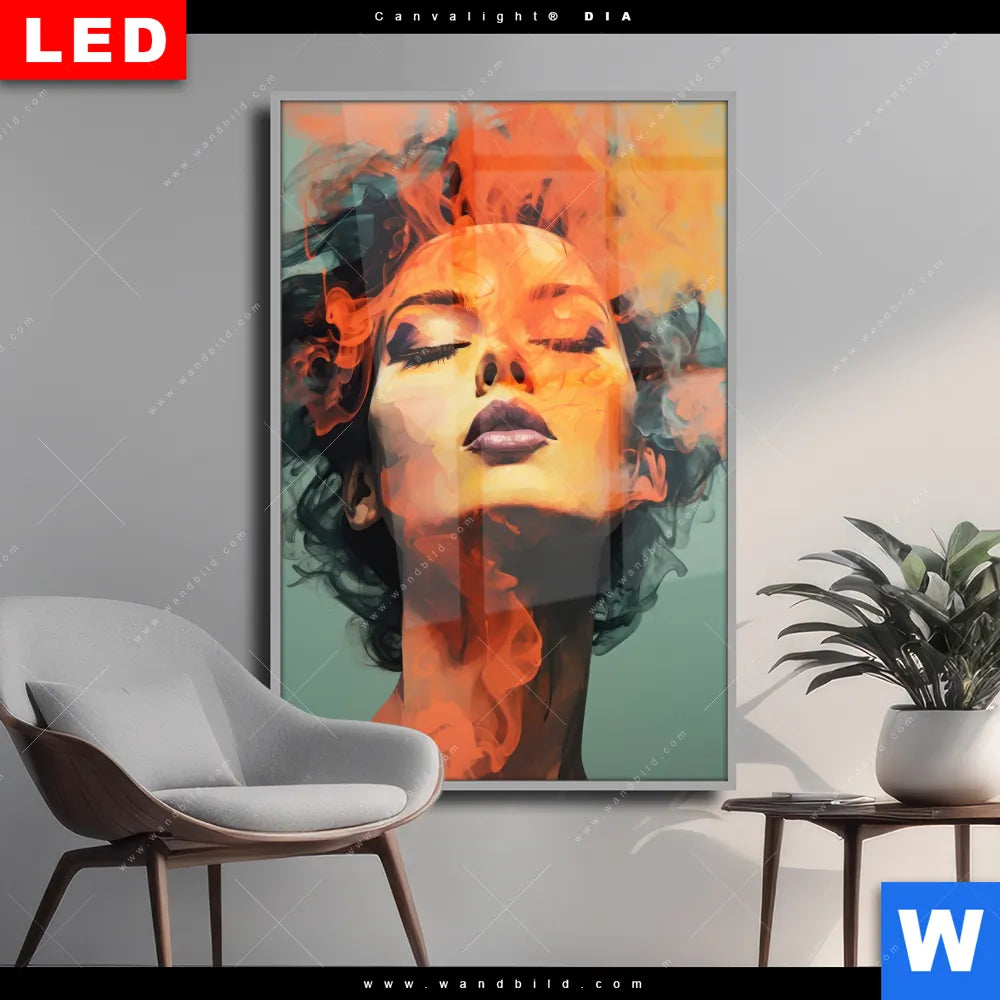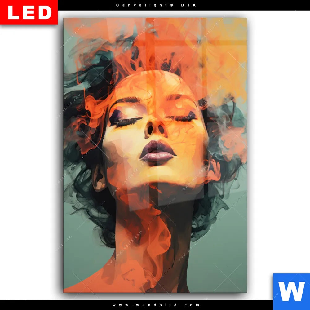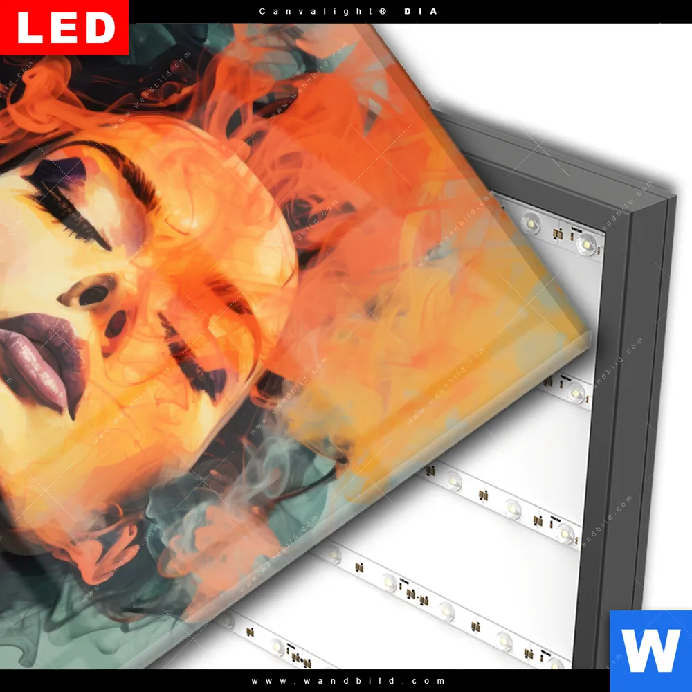 Wechselmotiv Acrylglas Canvalight® DIA | Frau mit buntem Rauch | Hochformat