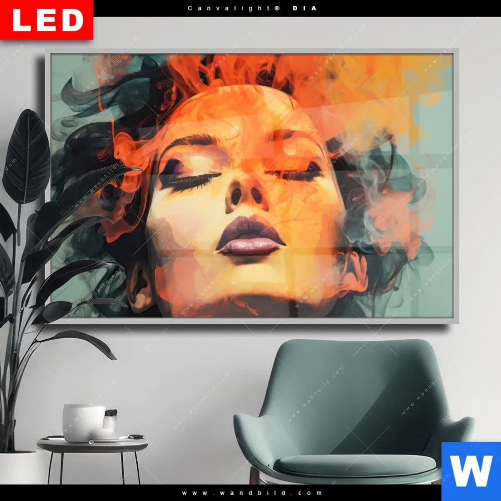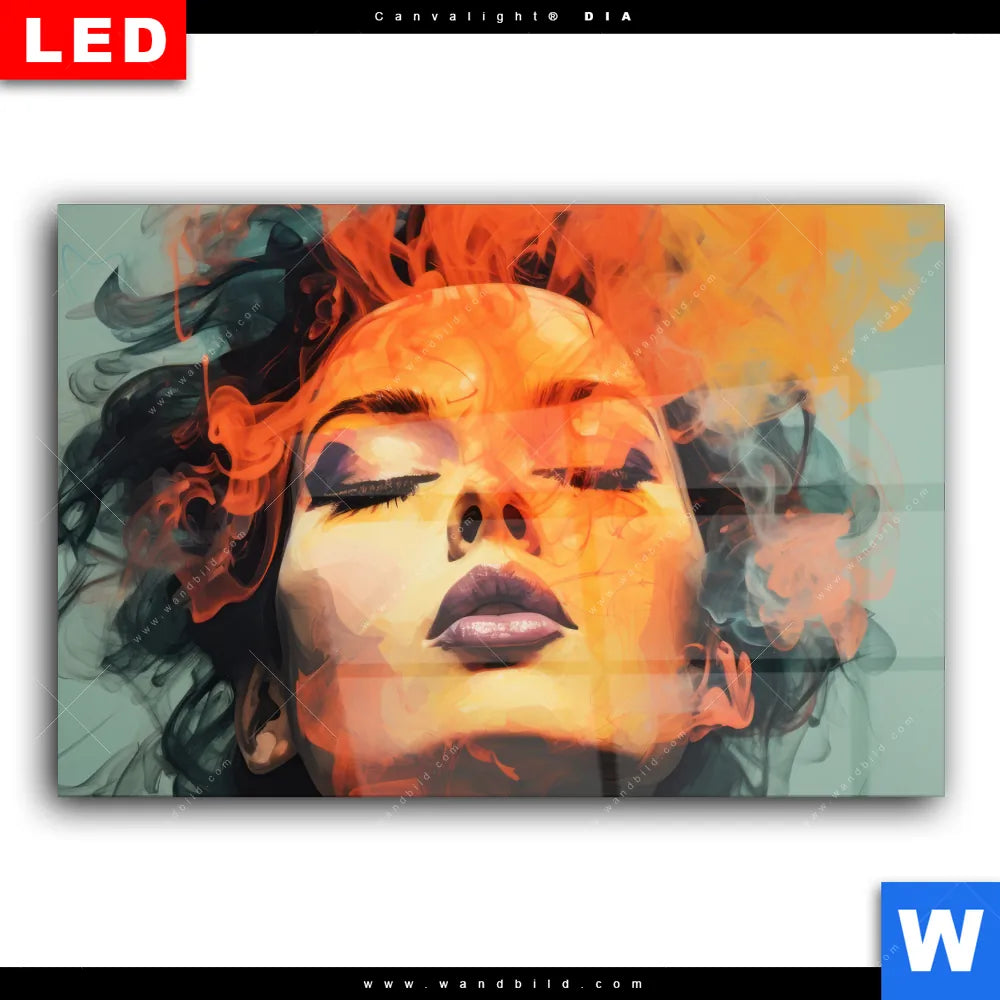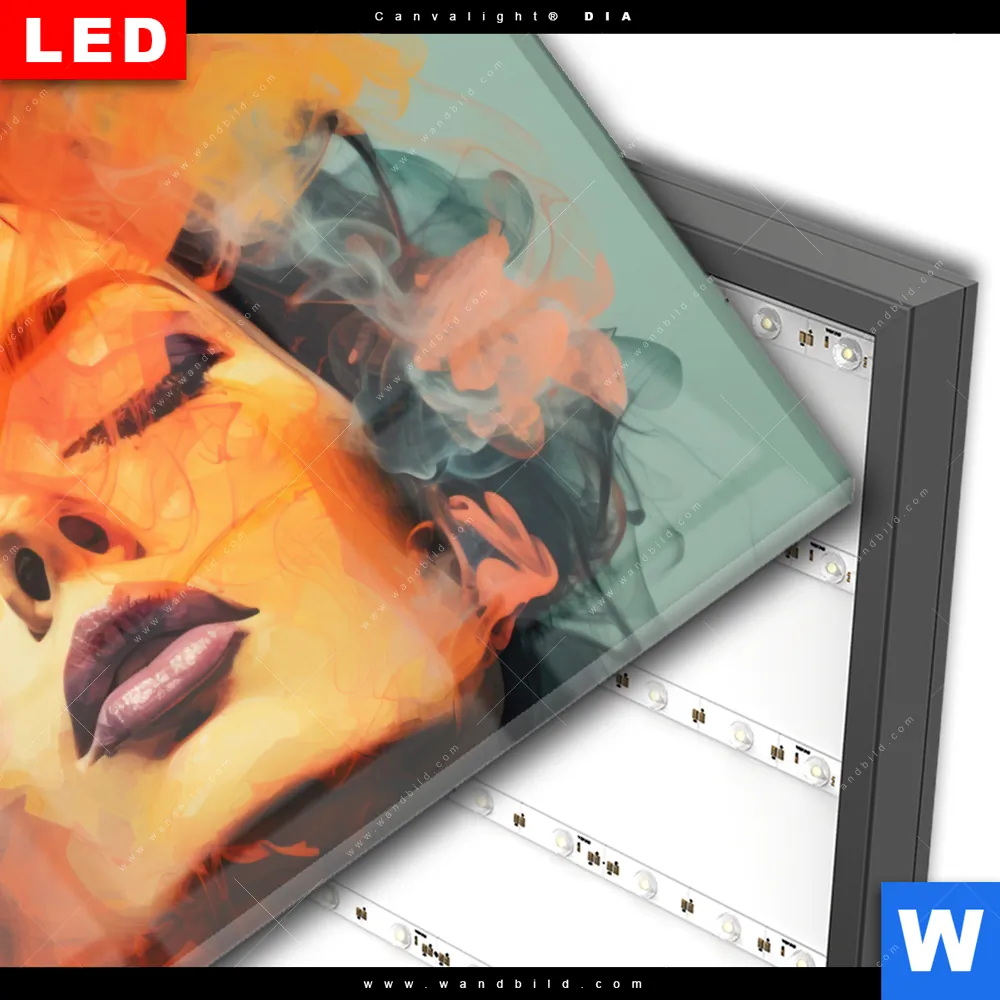 Wechselmotiv Acrylglas Canvalight® DIA | Frau mit buntem Rauch | Querformat