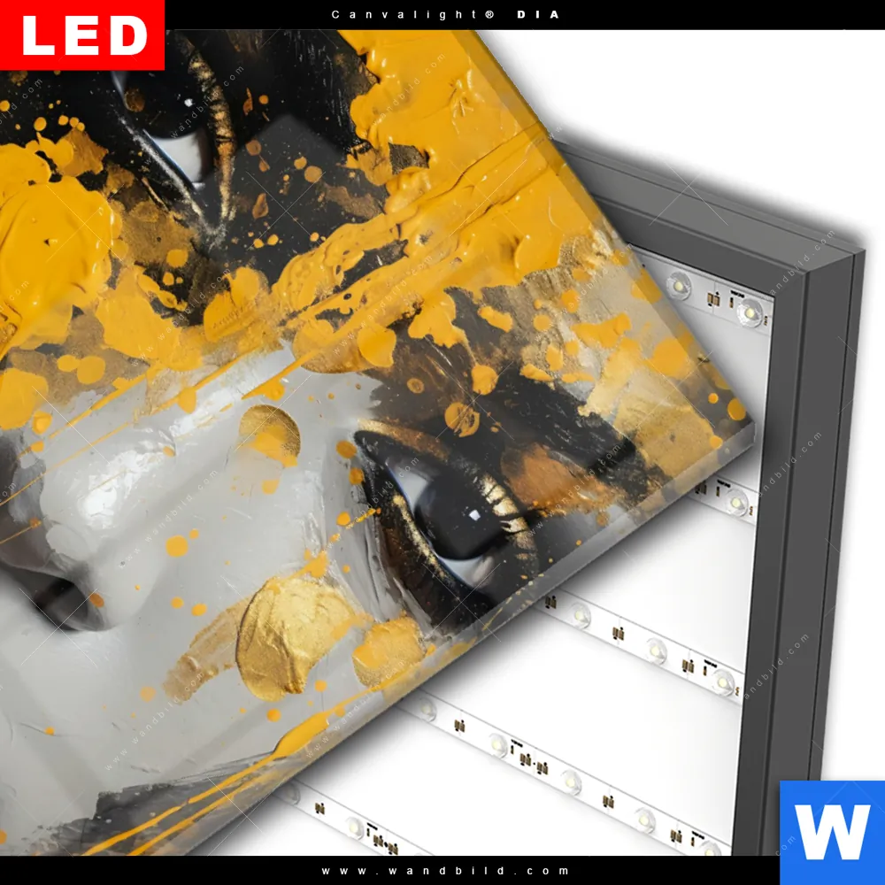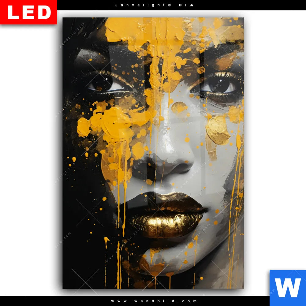 Wechselmotiv Acrylglas Canvalight® DIA | Frau mit Goldfarbe | Hochformat