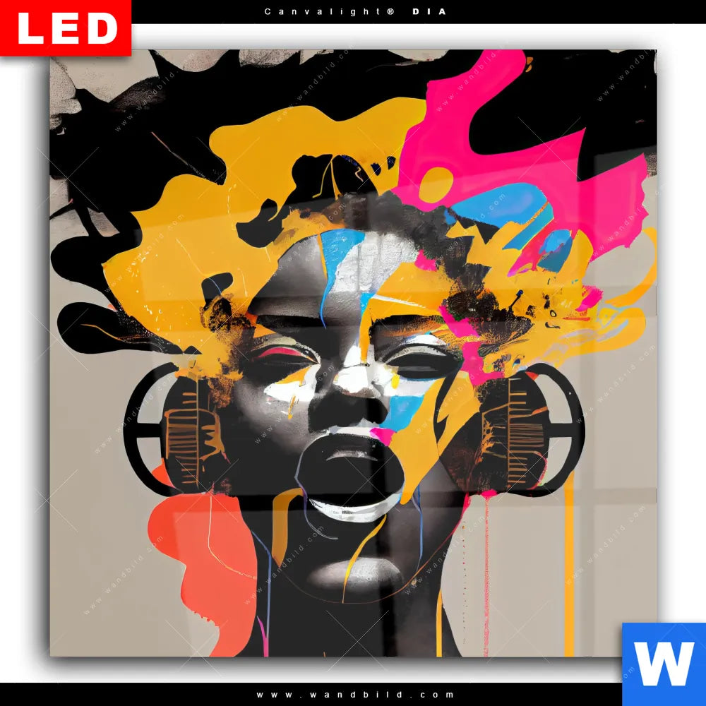Wechselmotiv Acrylglas Canvalight® DIA | Frau mit Kopfhörern | Quadrat