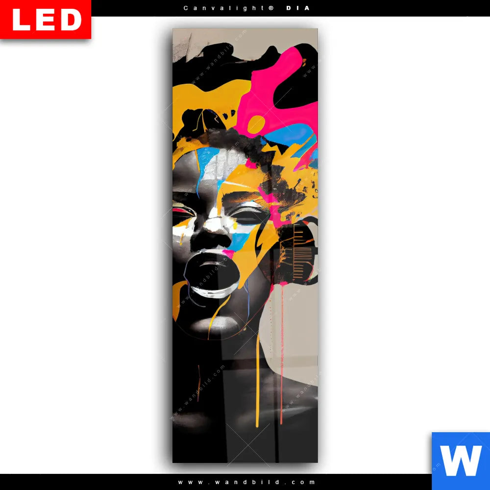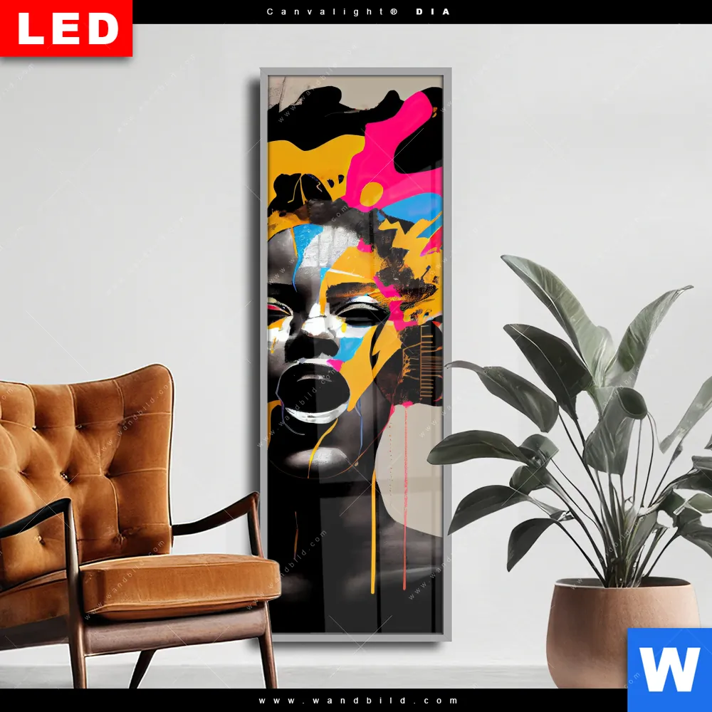 Wechselmotiv Acrylglas Canvalight® DIA | Frau mit Kopfhörern | Schmal