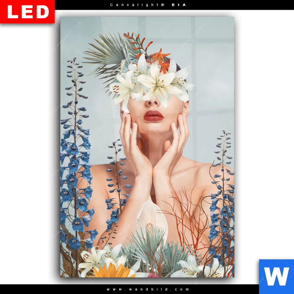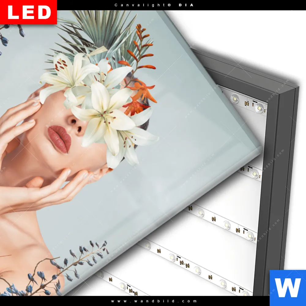 Wechselmotiv Acrylglas Canvalight® DIA | Frauenportrait mit Blumen | Hochformat