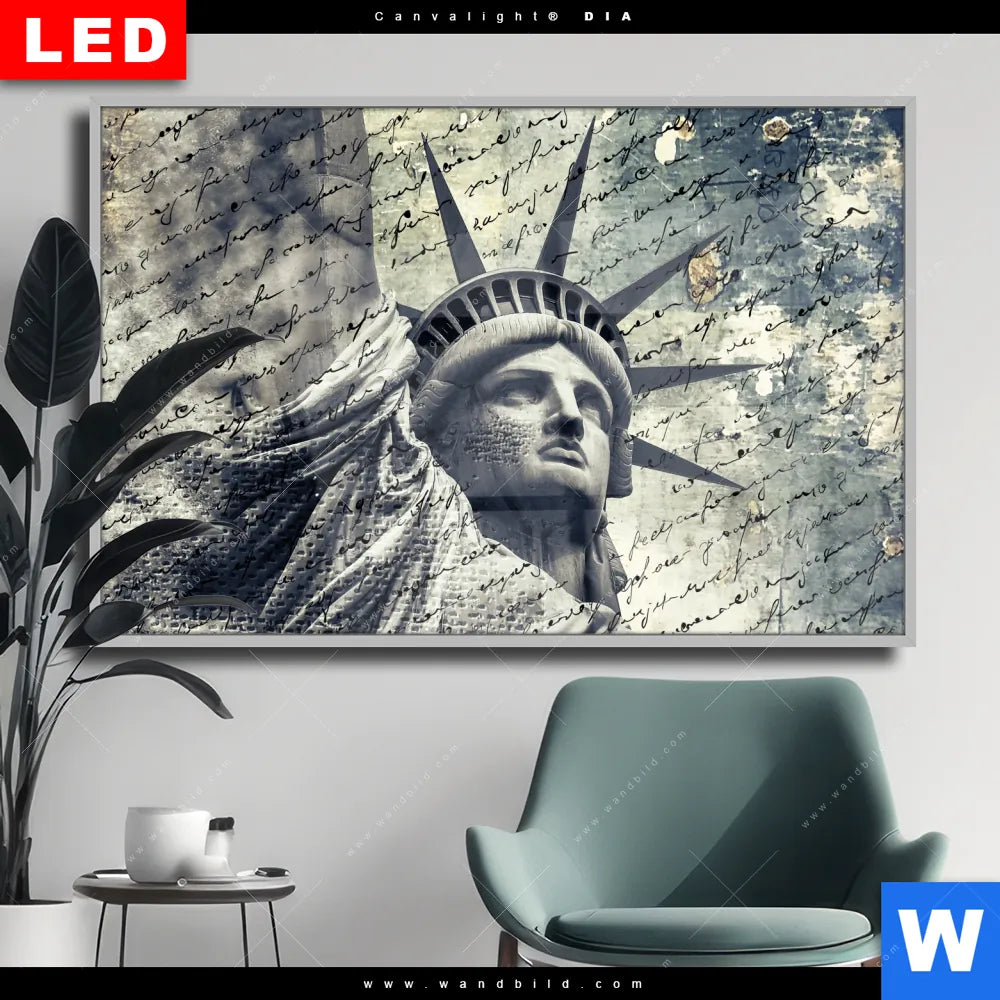 Wechselmotiv Acrylglas Canvalight® DIA | Freiheitsstatue im Sandsturm | Querformat
