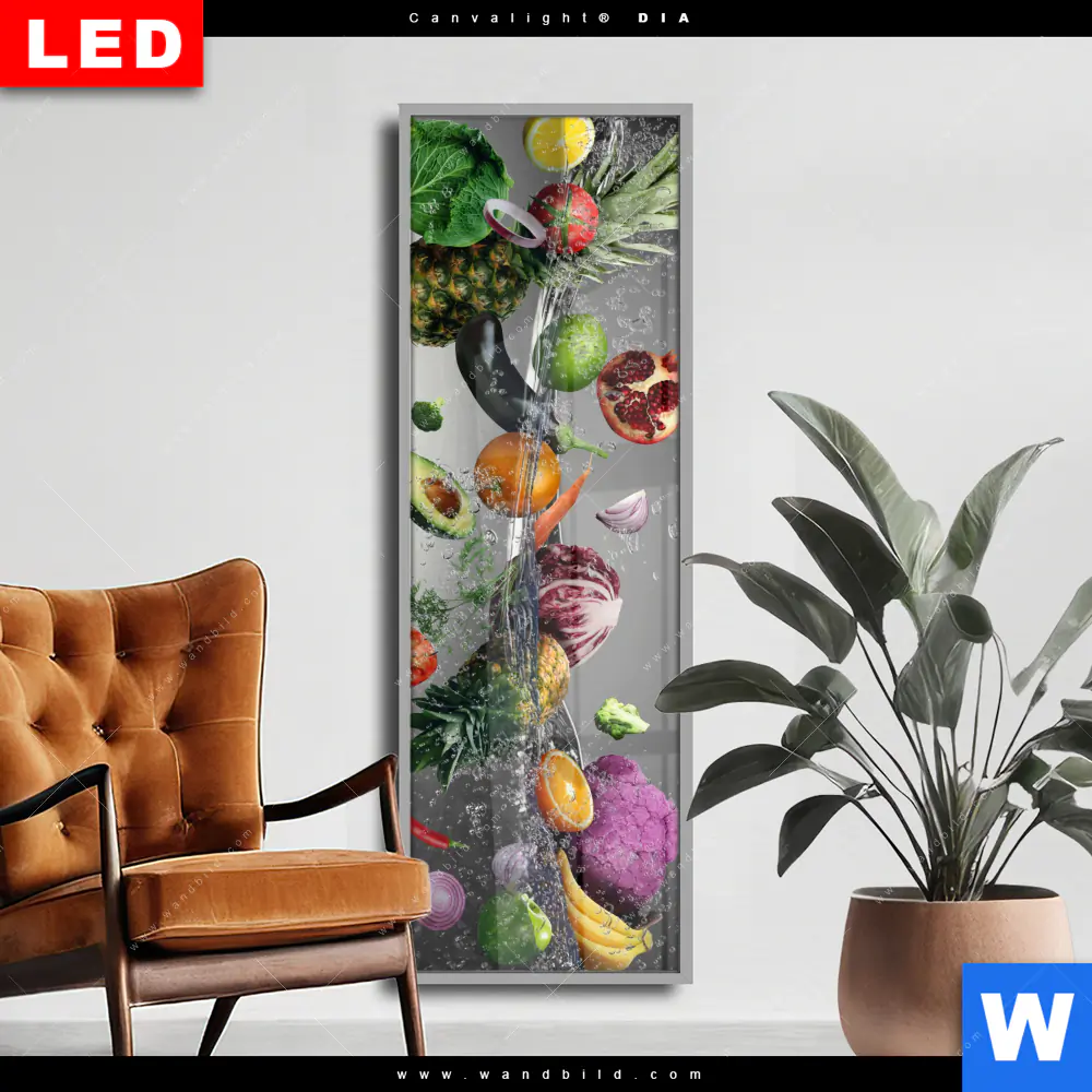 Wechselmotiv Acrylglas Canvalight® DIA | Frische Gemüse-Explosion | Schmal