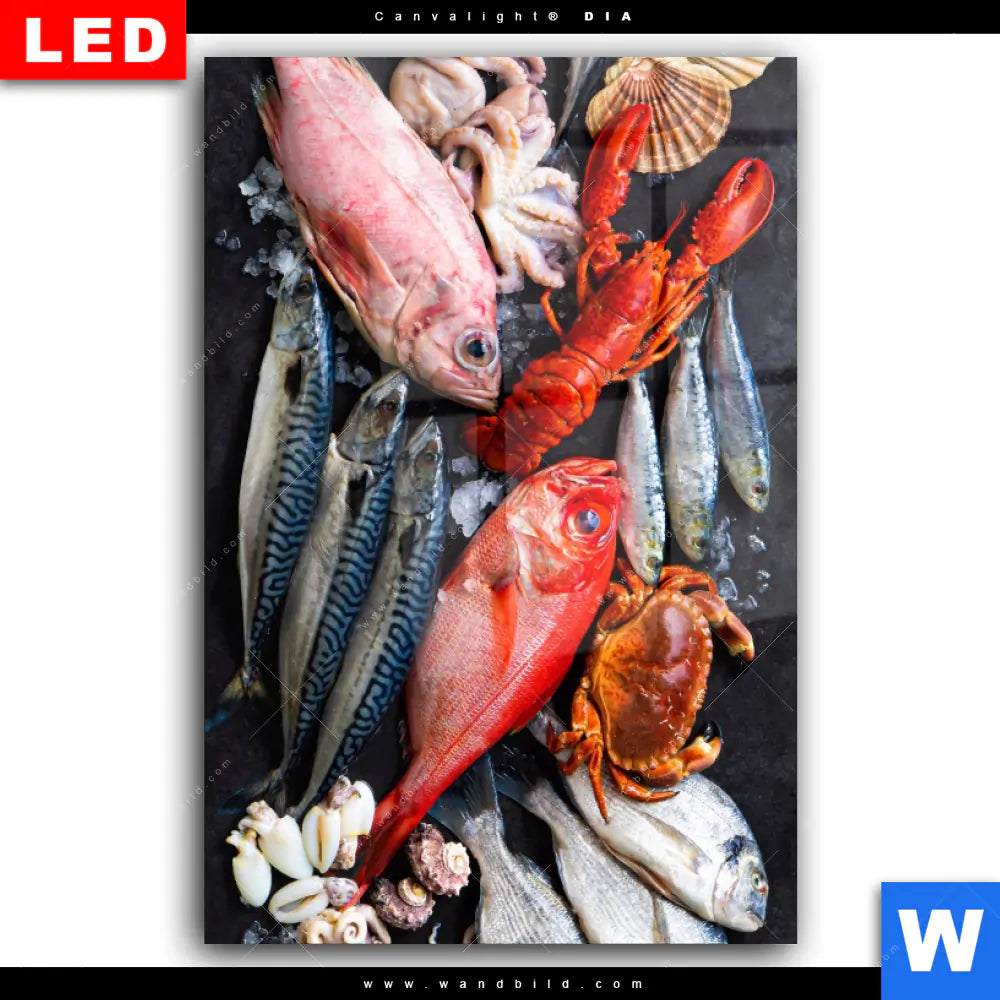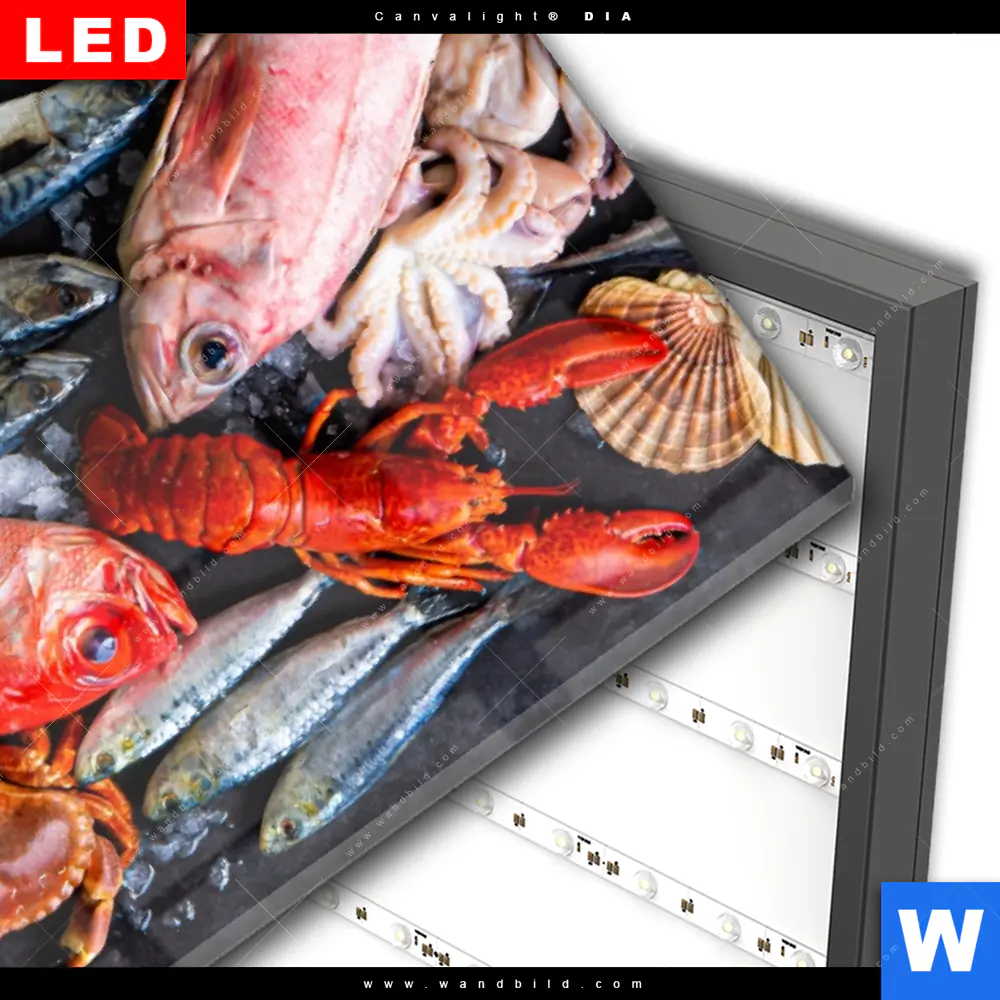 Wechselmotiv Acrylglas Canvalight® DIA | Frischer Fisch und Meeresfrüchte | Hochformat