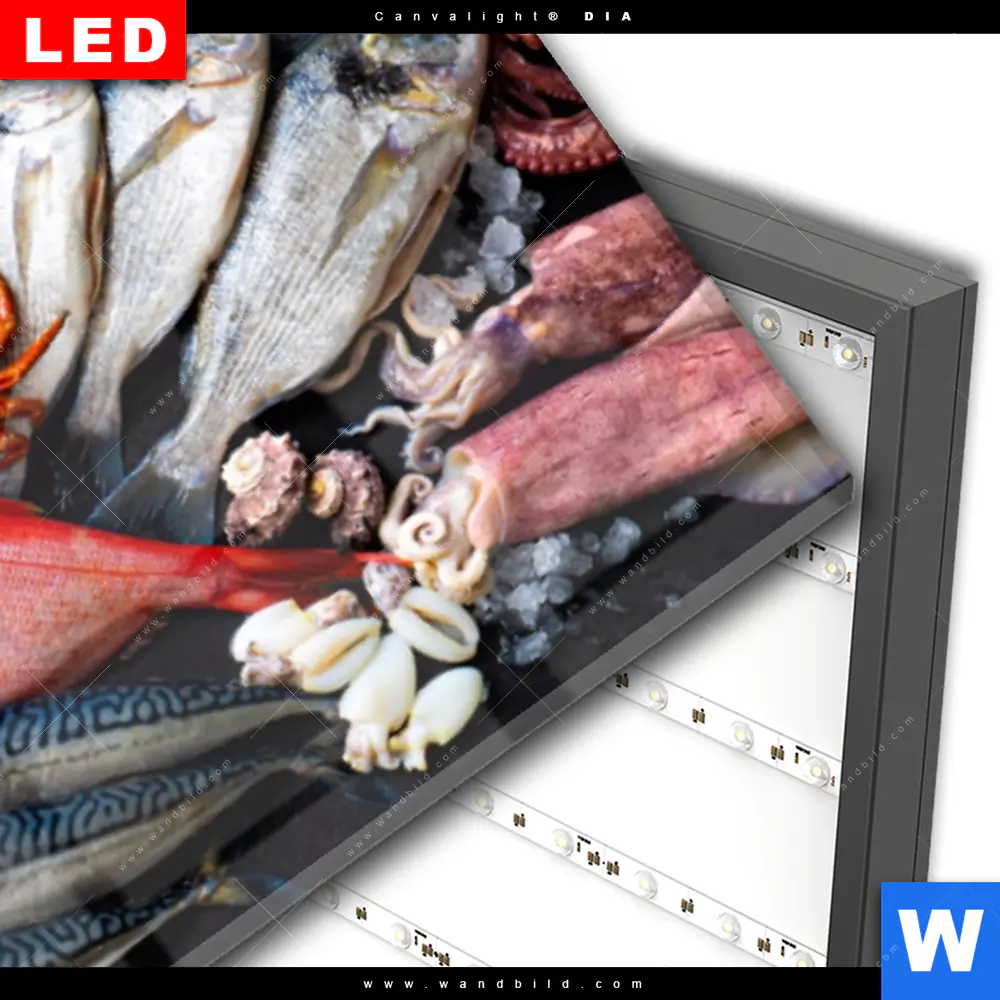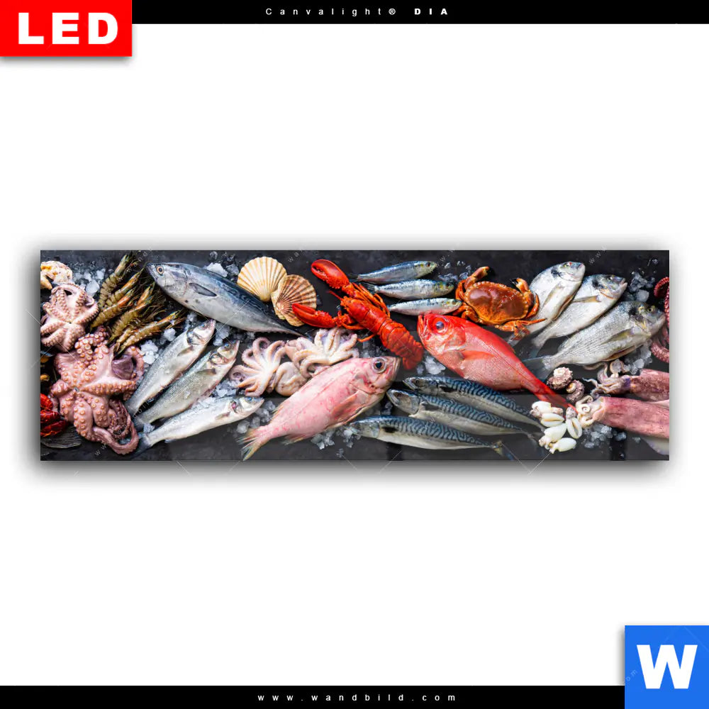 Wechselmotiv Acrylglas Canvalight® DIA | Frischer Fisch und Meeresfrüchte | Panorama