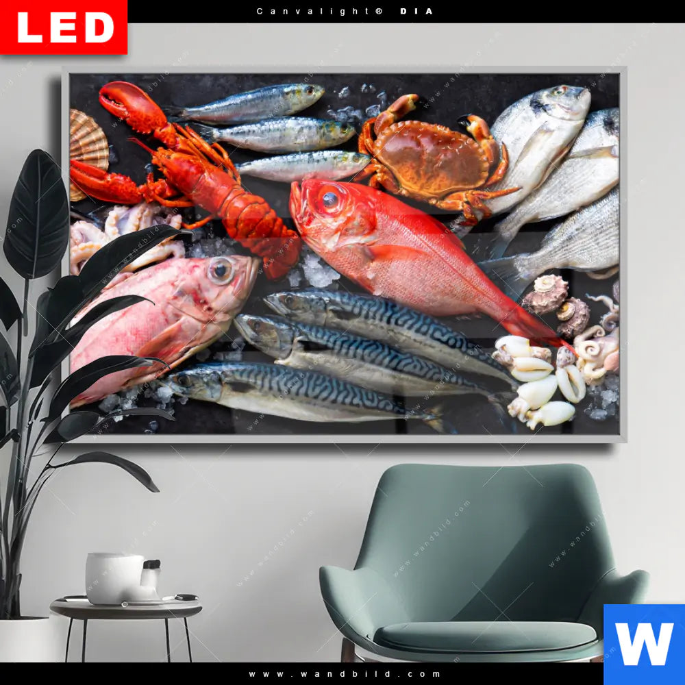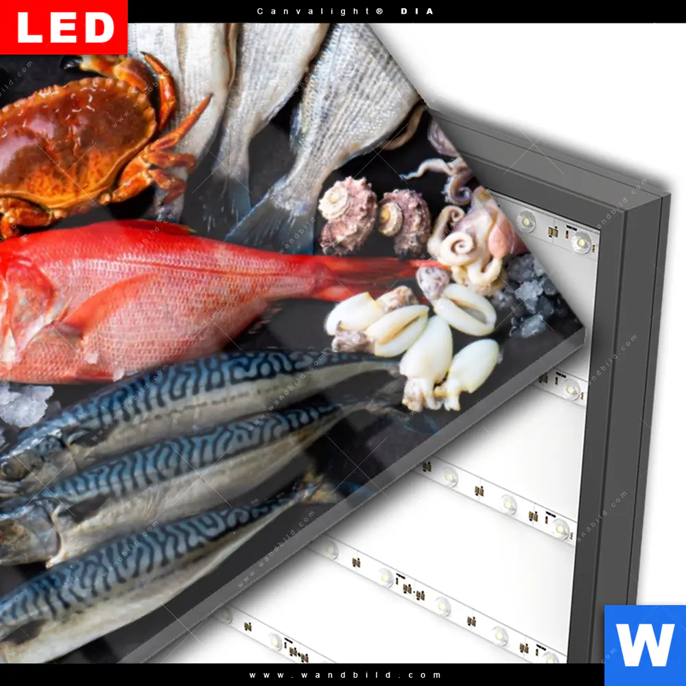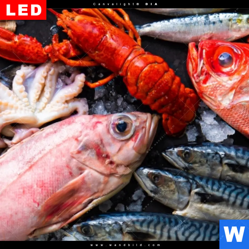 Wechselmotiv Acrylglas Canvalight® DIA | Frischer Fisch und Meeresfrüchte | Querformat