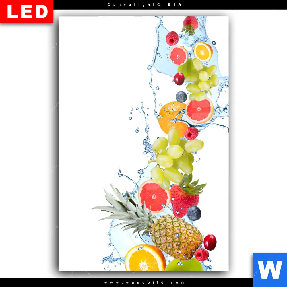 Wechselmotiv Acrylglas Canvalight® DIA | Früchte in Spritzwasser | Hochformat