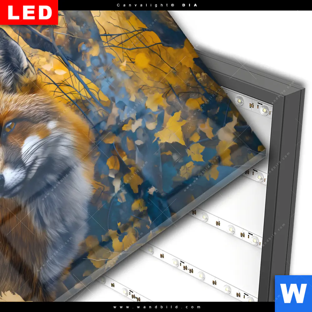 Wechselmotiv Acrylglas Canvalight® DIA | Fuchs im Blätterwald | Querformat