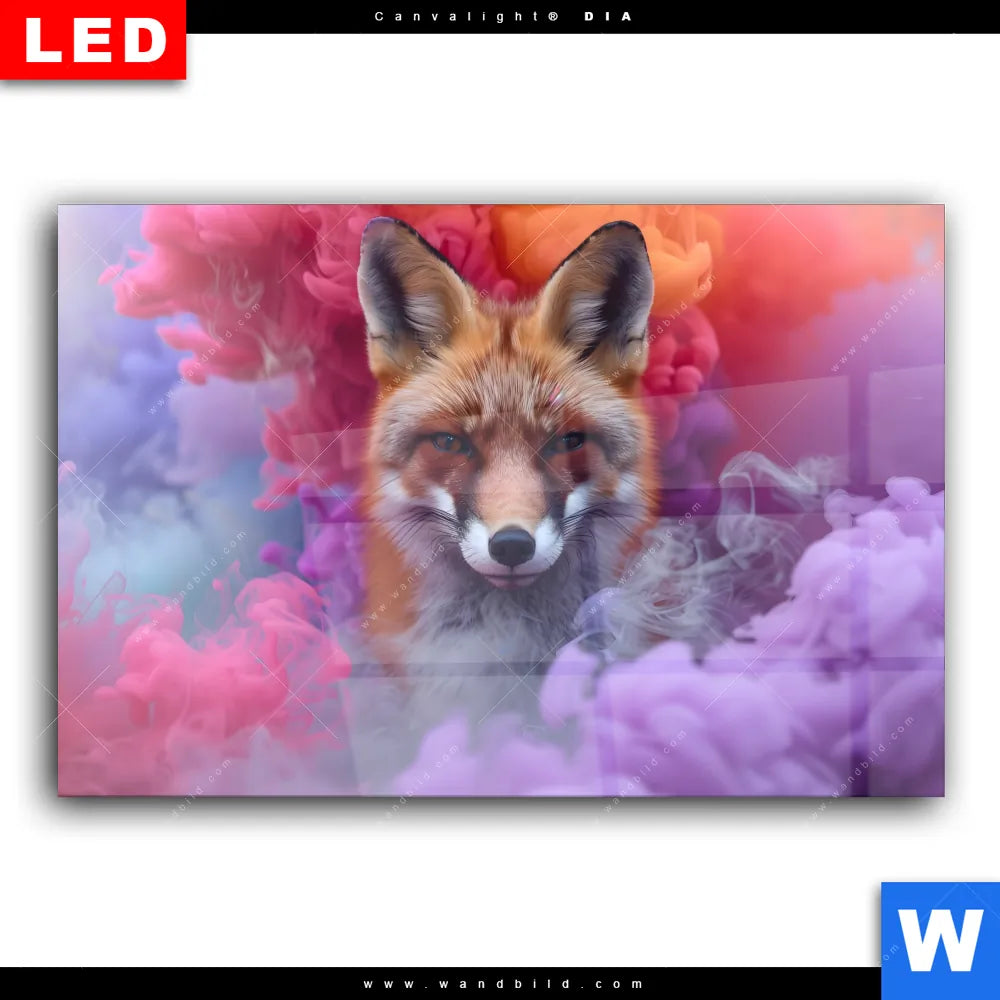 Wechselmotiv Acrylglas Canvalight® DIA | Fuchs in Farbnebel | Querformat