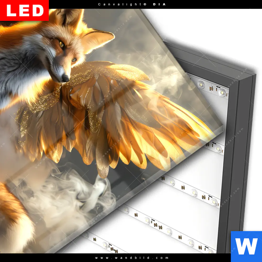 Wechselmotiv Acrylglas Canvalight® DIA | Fuchs mit goldenen Flügeln | Quadrat