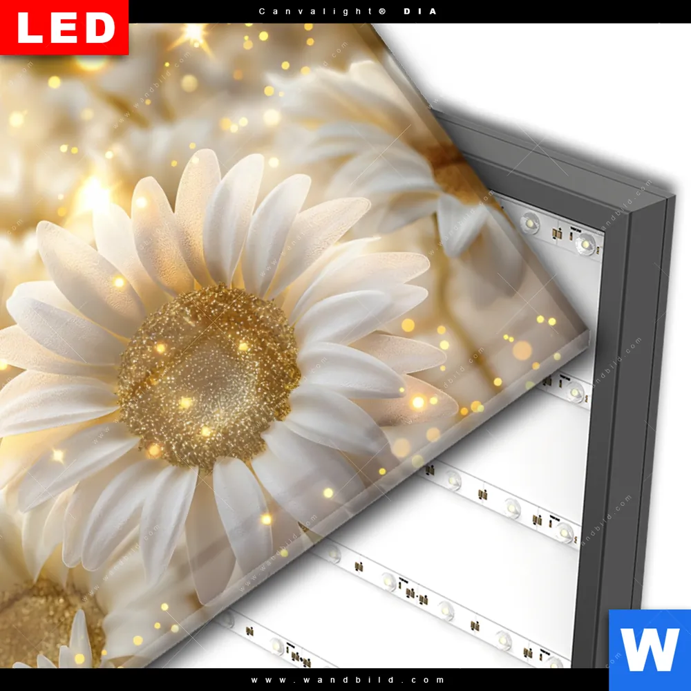 Wechselmotiv Acrylglas Canvalight® DIA | Funkelnde Blumen in Gold | Querformat