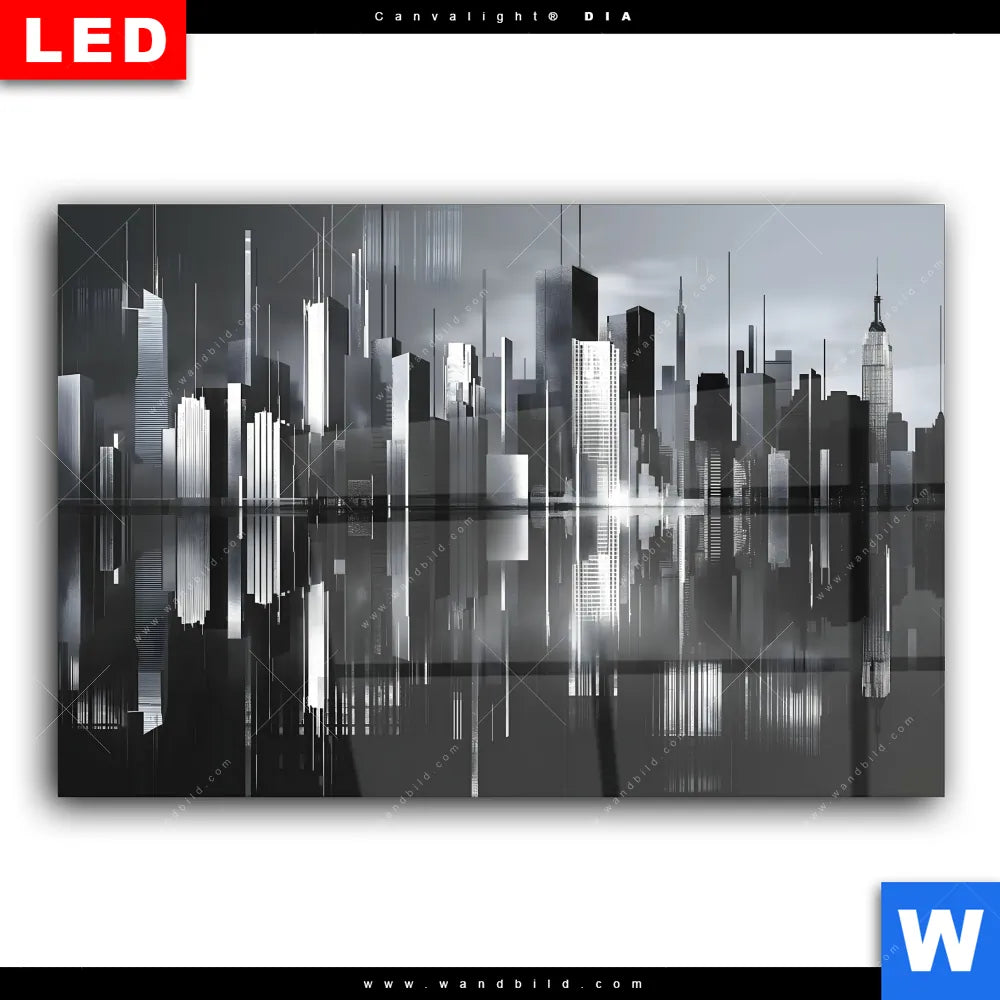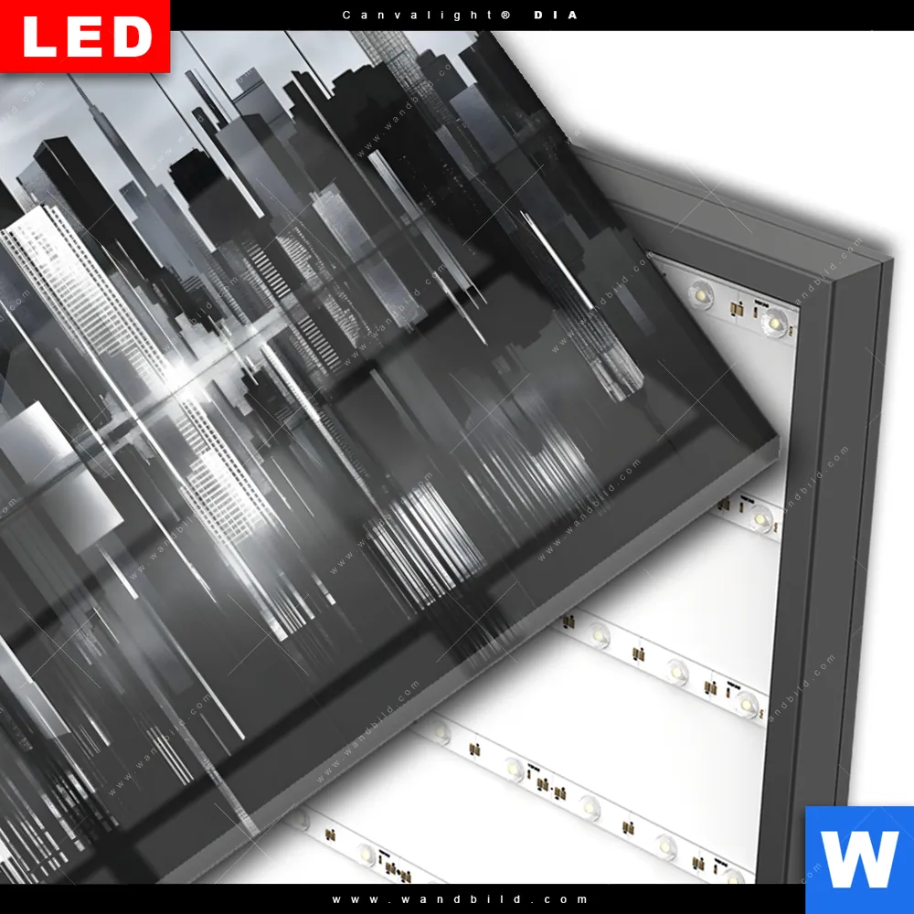 Wechselmotiv Acrylglas Canvalight® DIA | Futuristische Skyline | Querformat