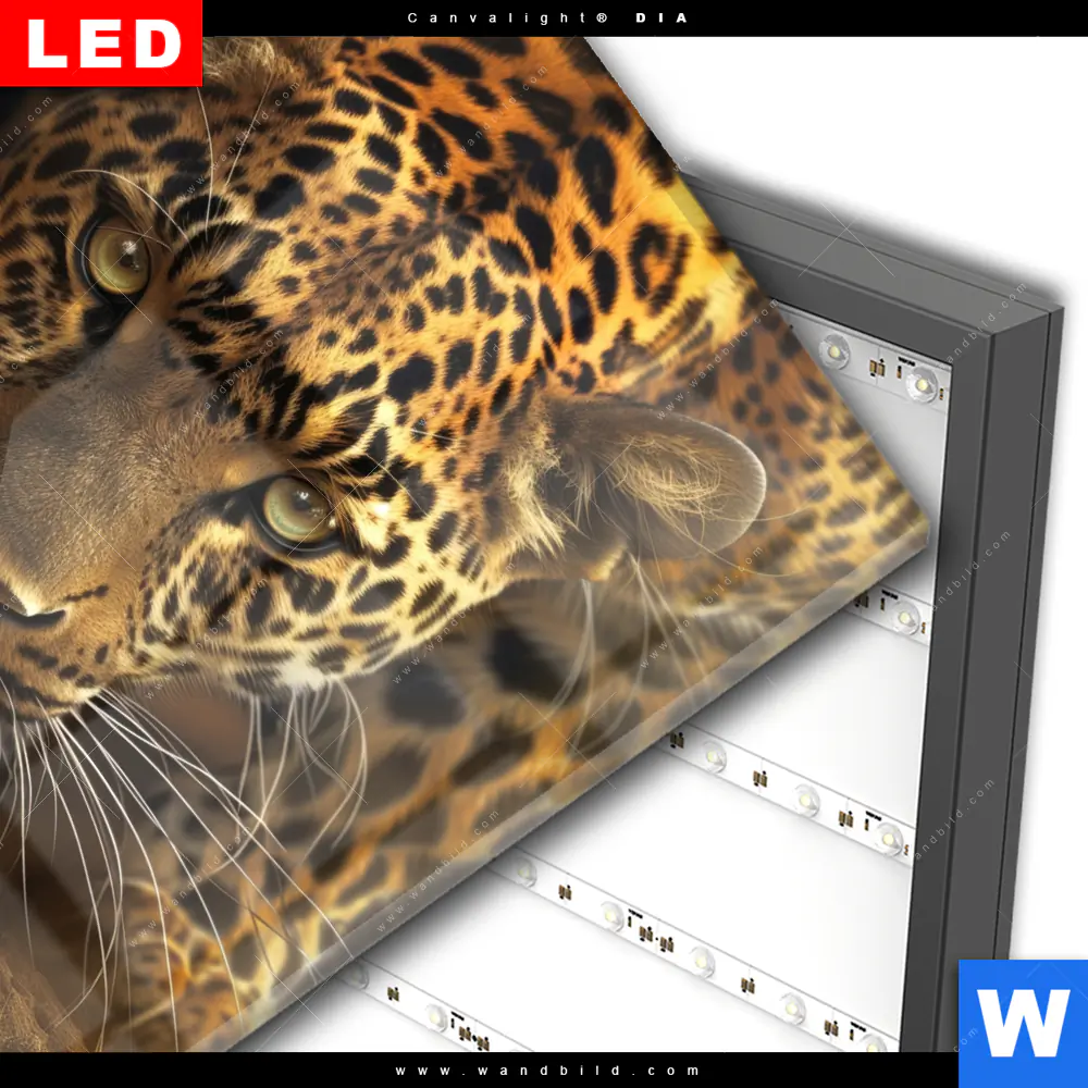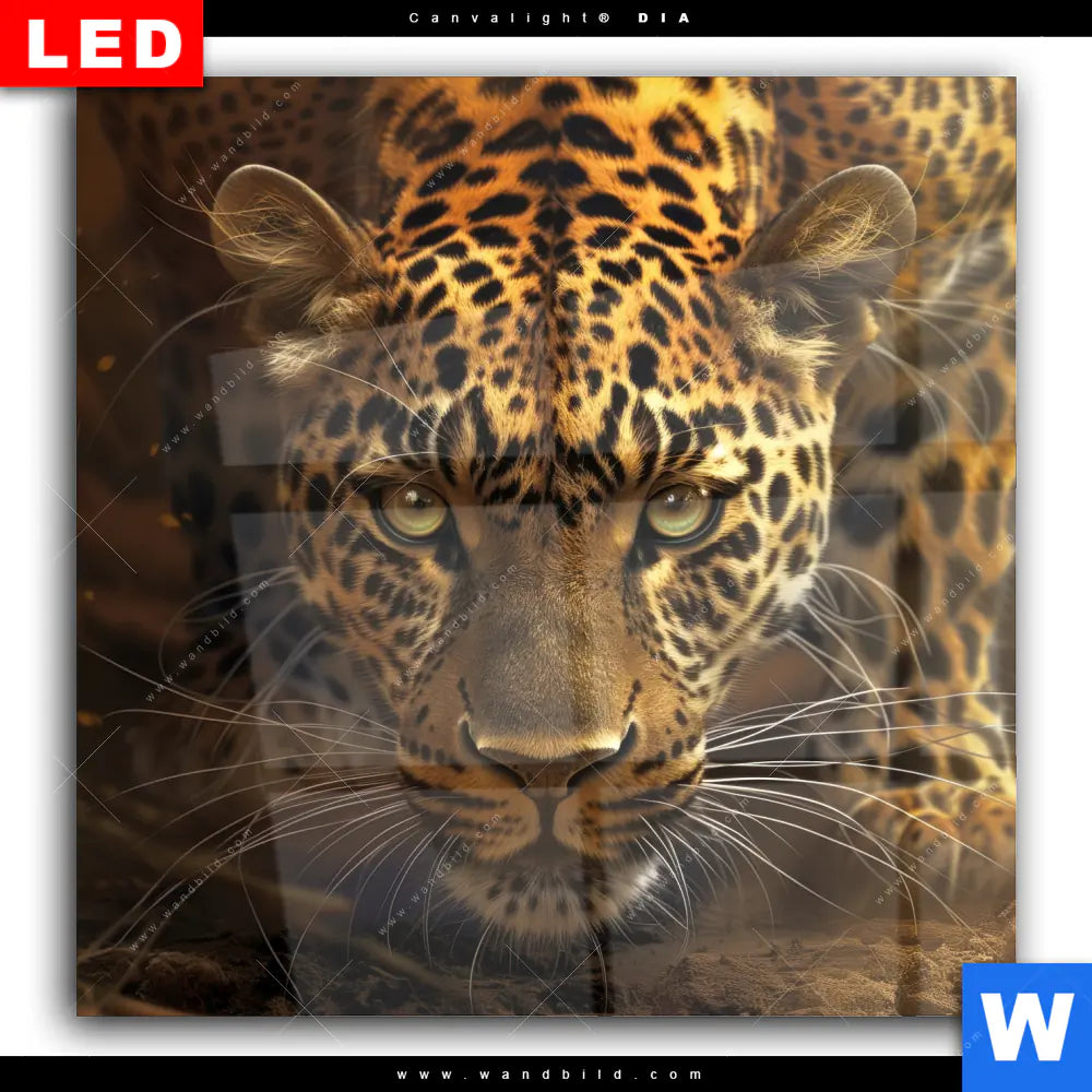 Wechselmotiv Acrylglas Canvalight® DIA | Geheimnisvoller Leopard | Quadrat