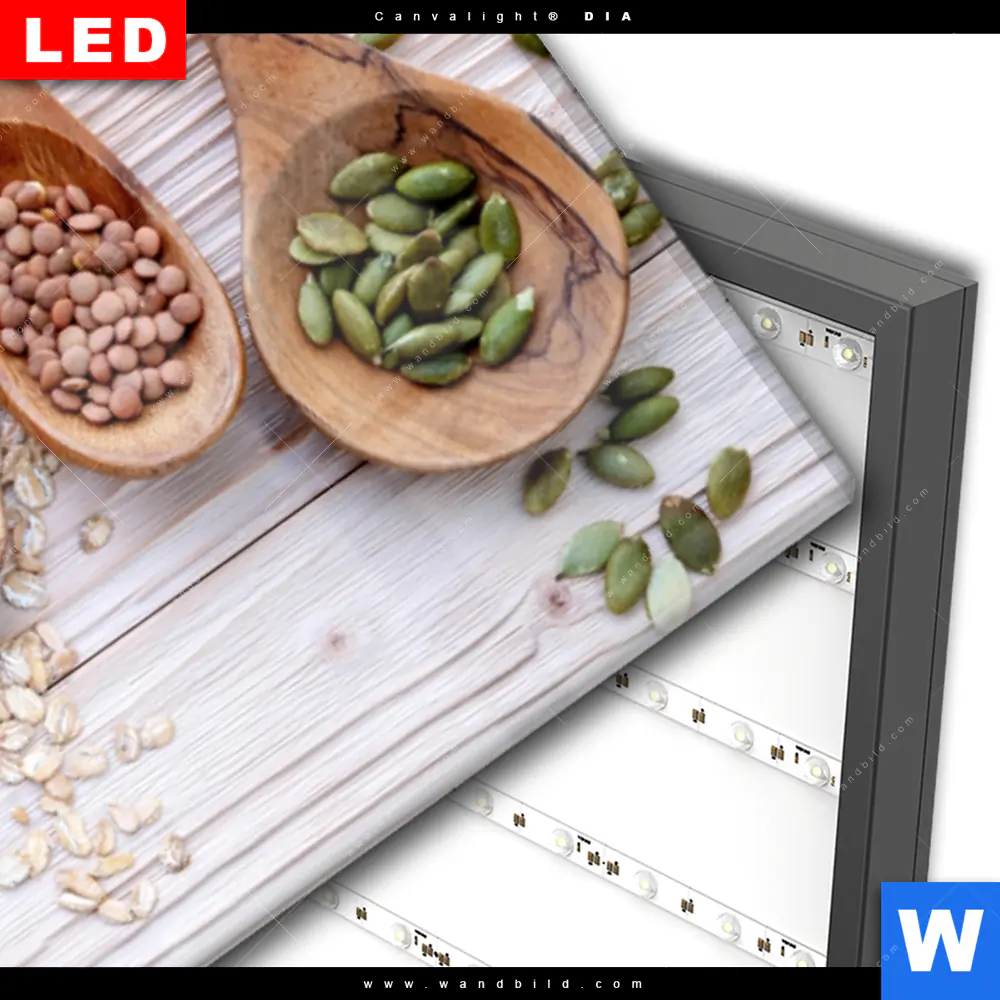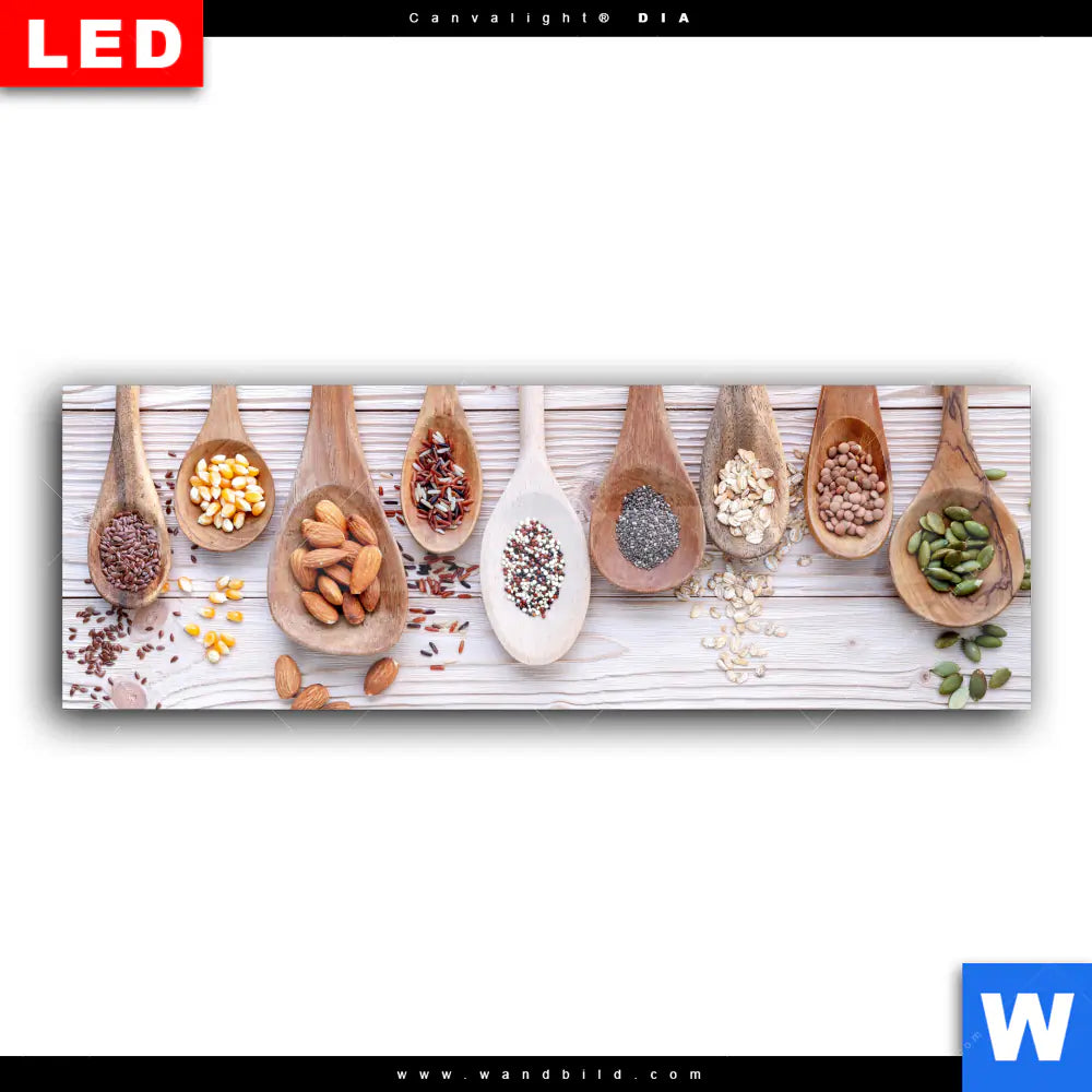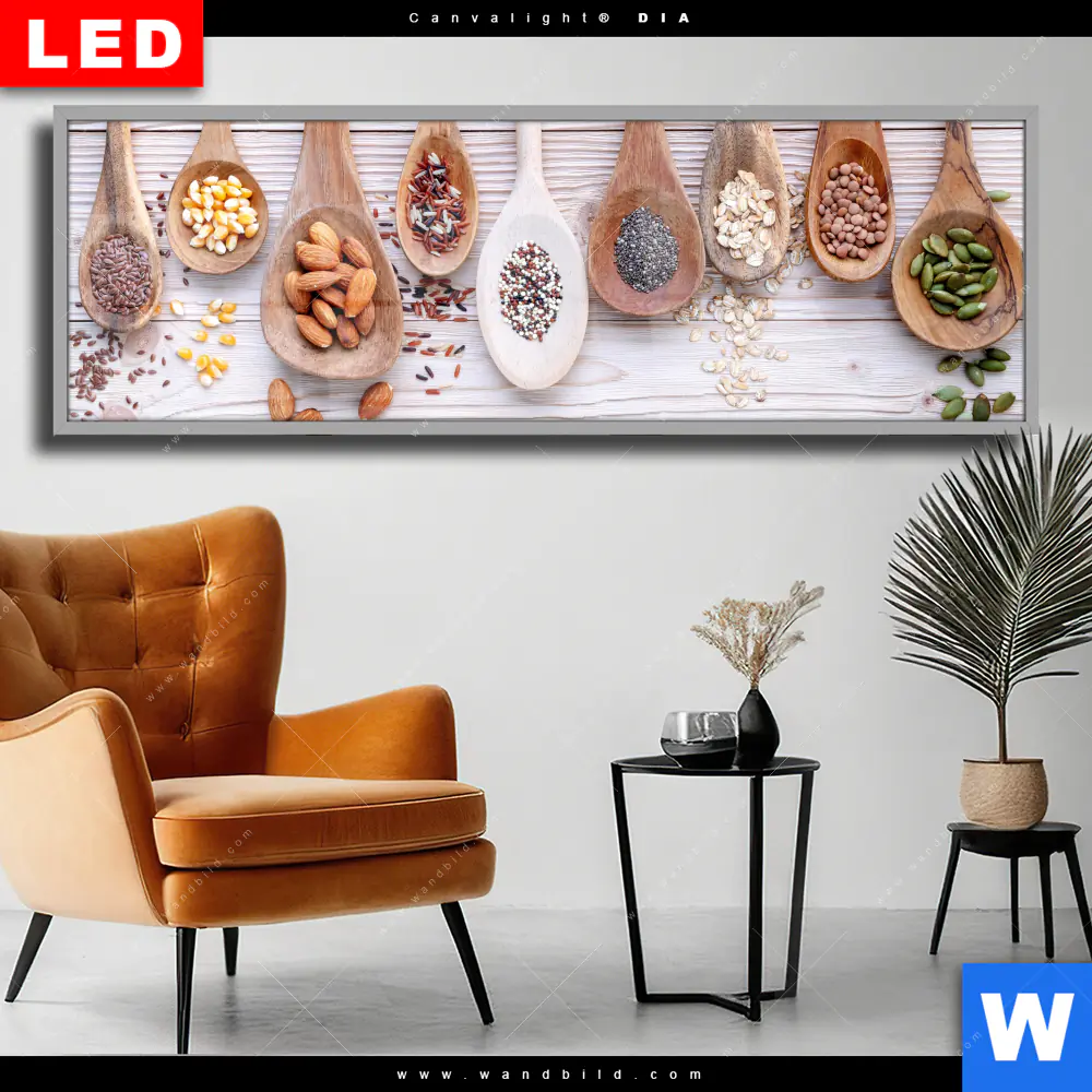 Wechselmotiv Acrylglas Canvalight® DIA | Gesunde Vielfalt aus Löffeln | Panorama