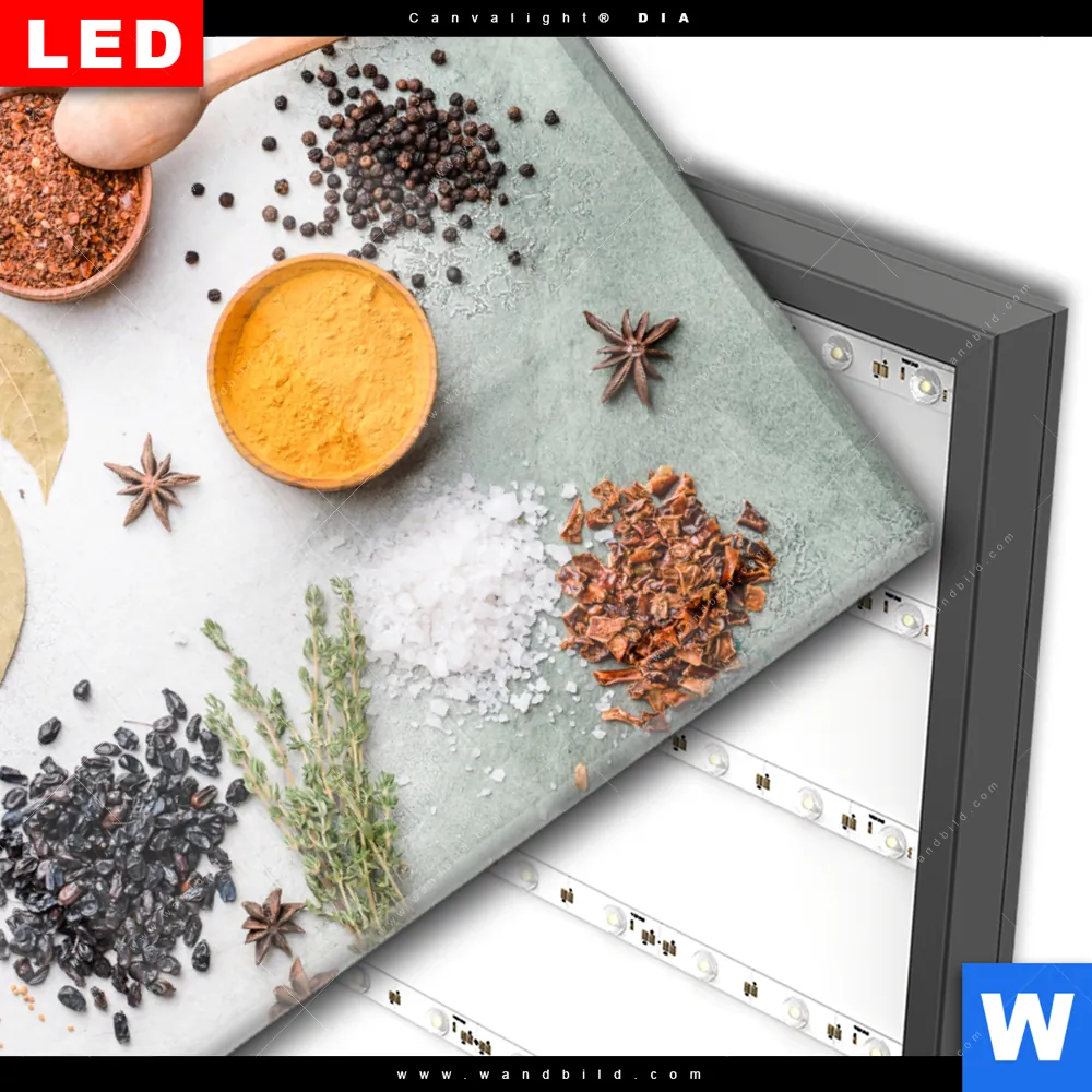 Wechselmotiv Acrylglas Canvalight® DIA | Gewürze auf hellem Untergrund | Querformat