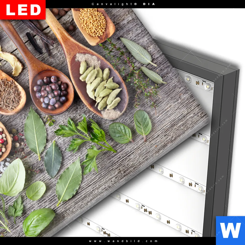 Wechselmotiv Acrylglas Canvalight® DIA | Gewürze auf Holzlöffeln | Querformat