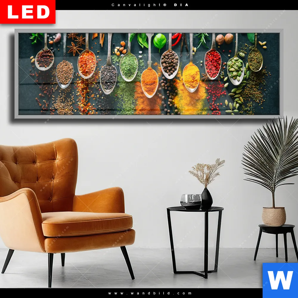 Wechselmotiv Acrylglas Canvalight® DIA | Gewürze auf Löffeln | Panorama