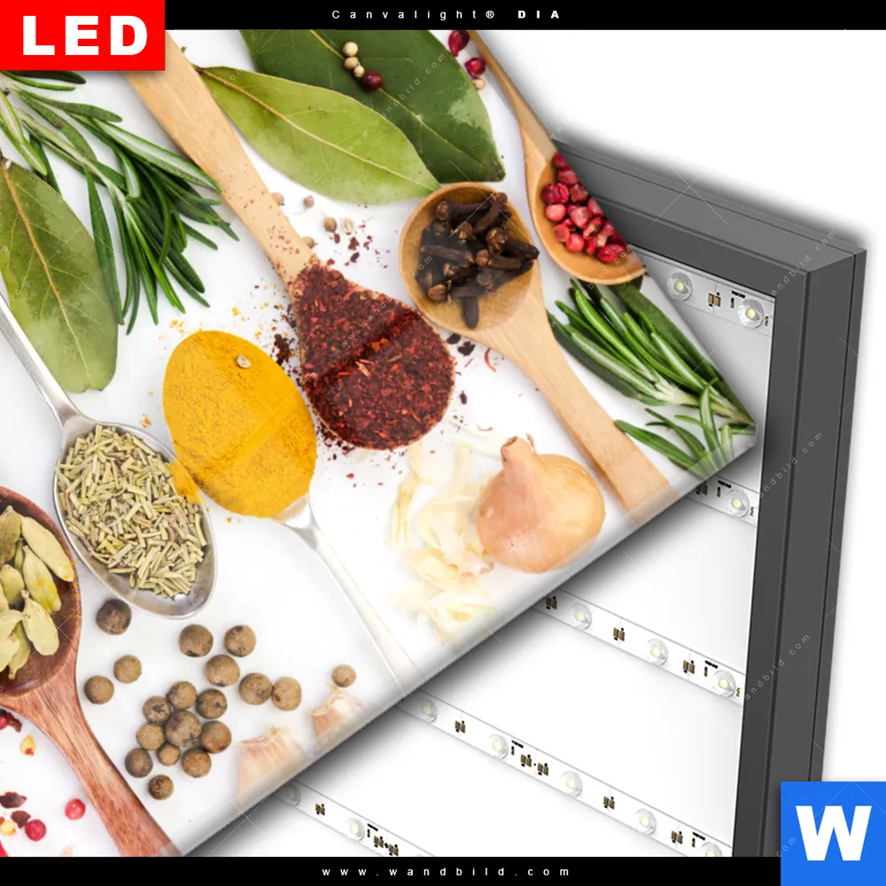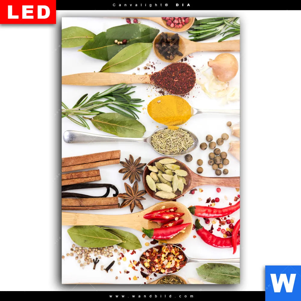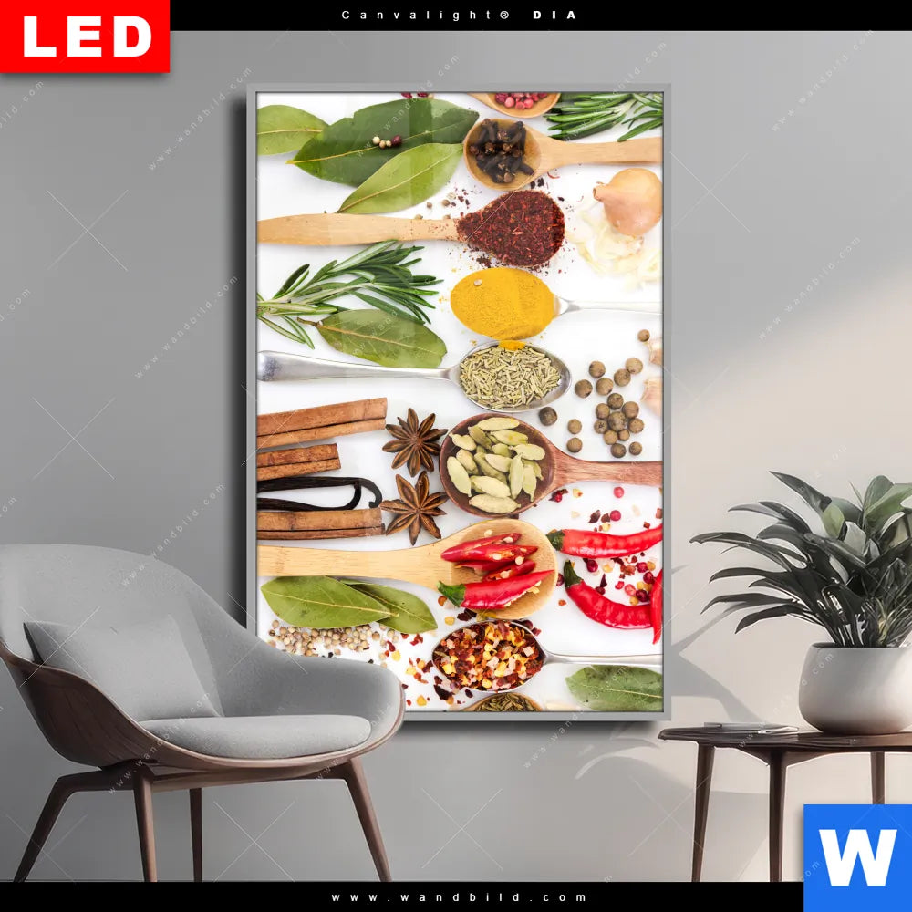 Wechselmotiv Acrylglas Canvalight® DIA | Gewürze auf Löffeln - weiß | Hochformat