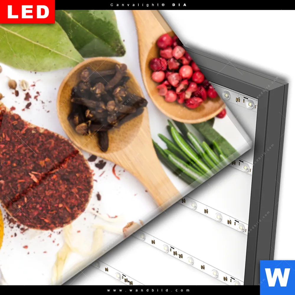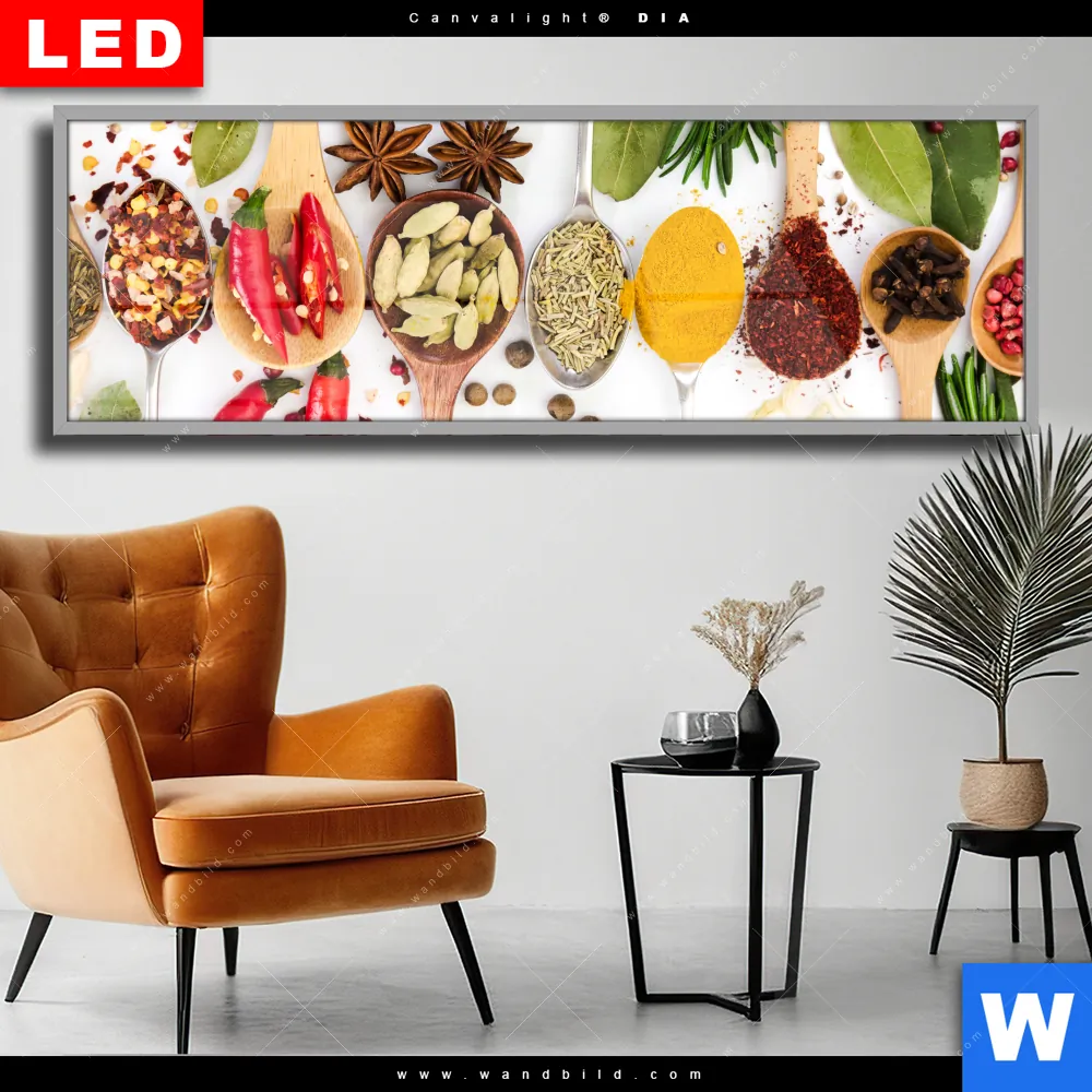 Wechselmotiv Acrylglas Canvalight® DIA | Gewürze auf Löffeln - weiß | Panorama