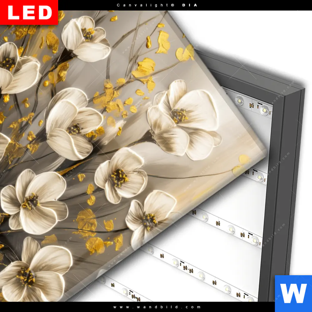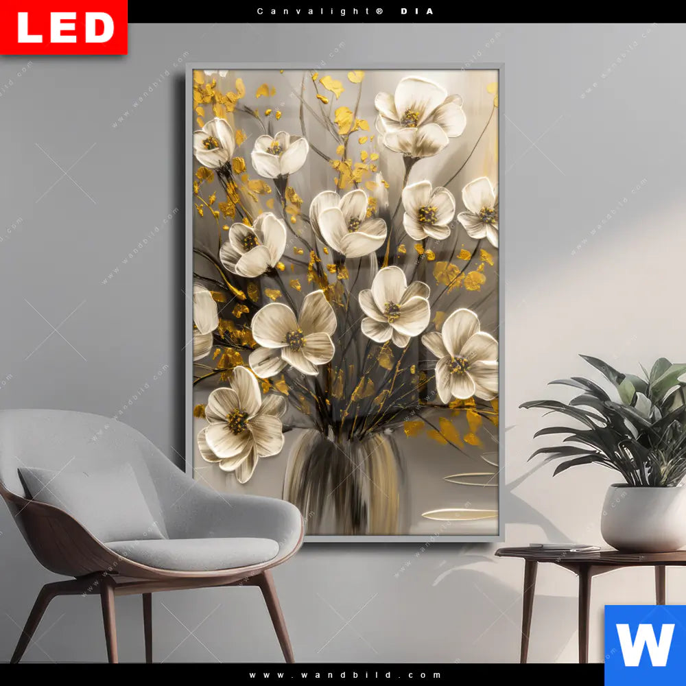 Wechselmotiv Acrylglas Canvalight® DIA | Goldene Blütenpoesie | Hochformat