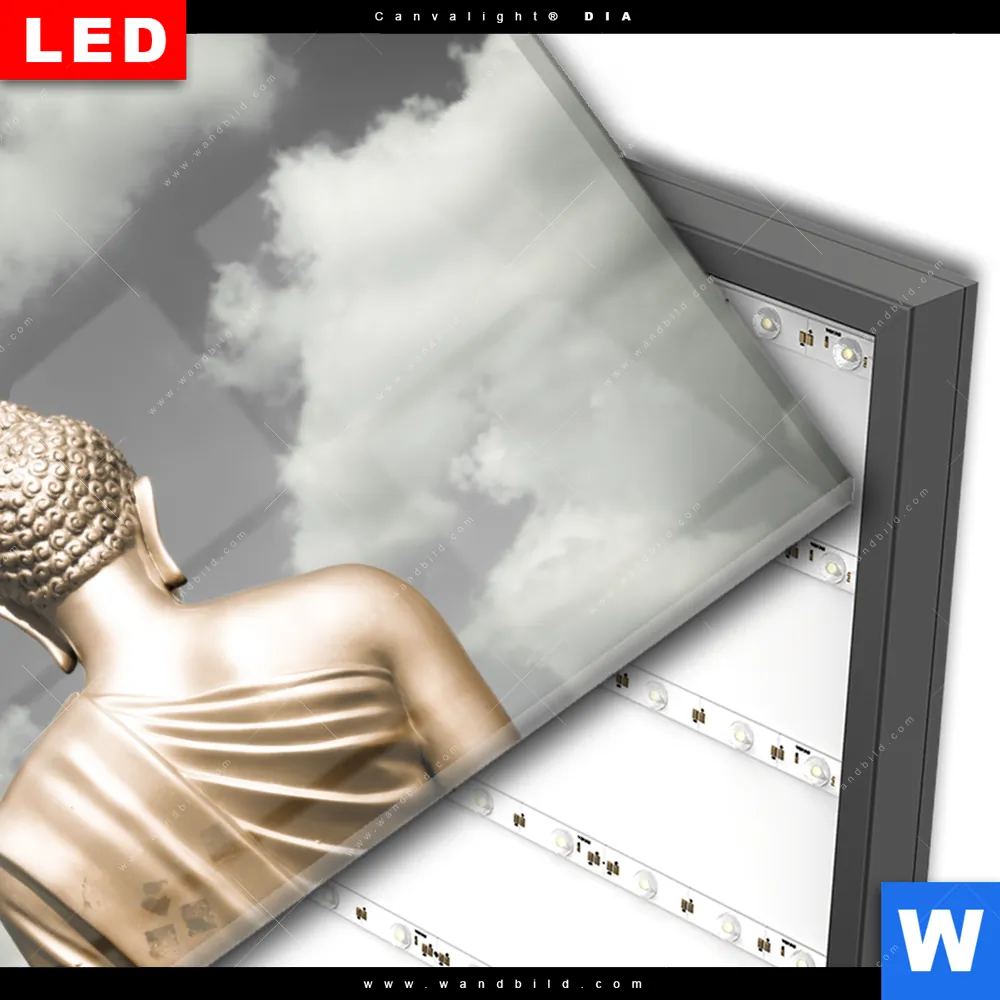 Wechselmotiv Acrylglas Canvalight® DIA | Goldene Buddha Statue | Querformat