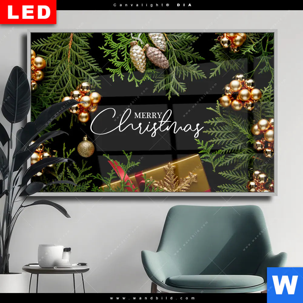 Wechselmotiv Acrylglas Canvalight® DIA | Goldene Weihnachtsgrüße | Querformat
