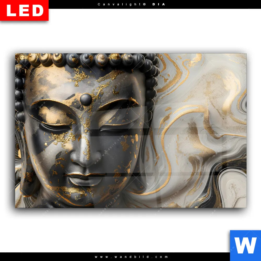 Wechselmotiv Acrylglas Canvalight® DIA | Goldener Buddha Fluid Art | Querformat
