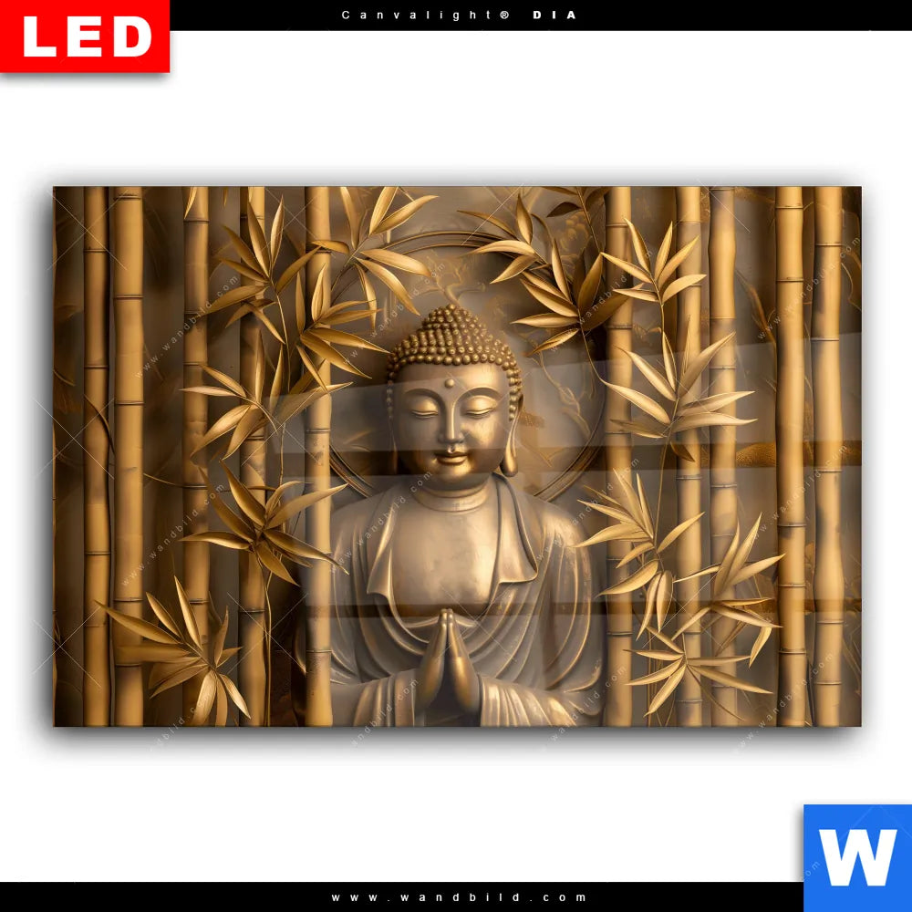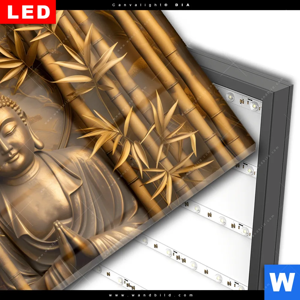 Wechselmotiv Acrylglas Canvalight® DIA | Goldener Buddha im Bambuswald | Querformat