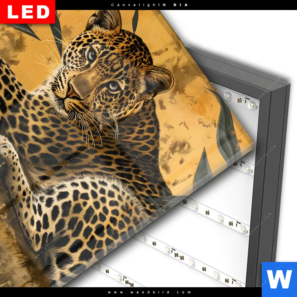 Wechselmotiv Acrylglas Canvalight® DIA | Goldener Leopard - Imposanter Jäger | Quadrat